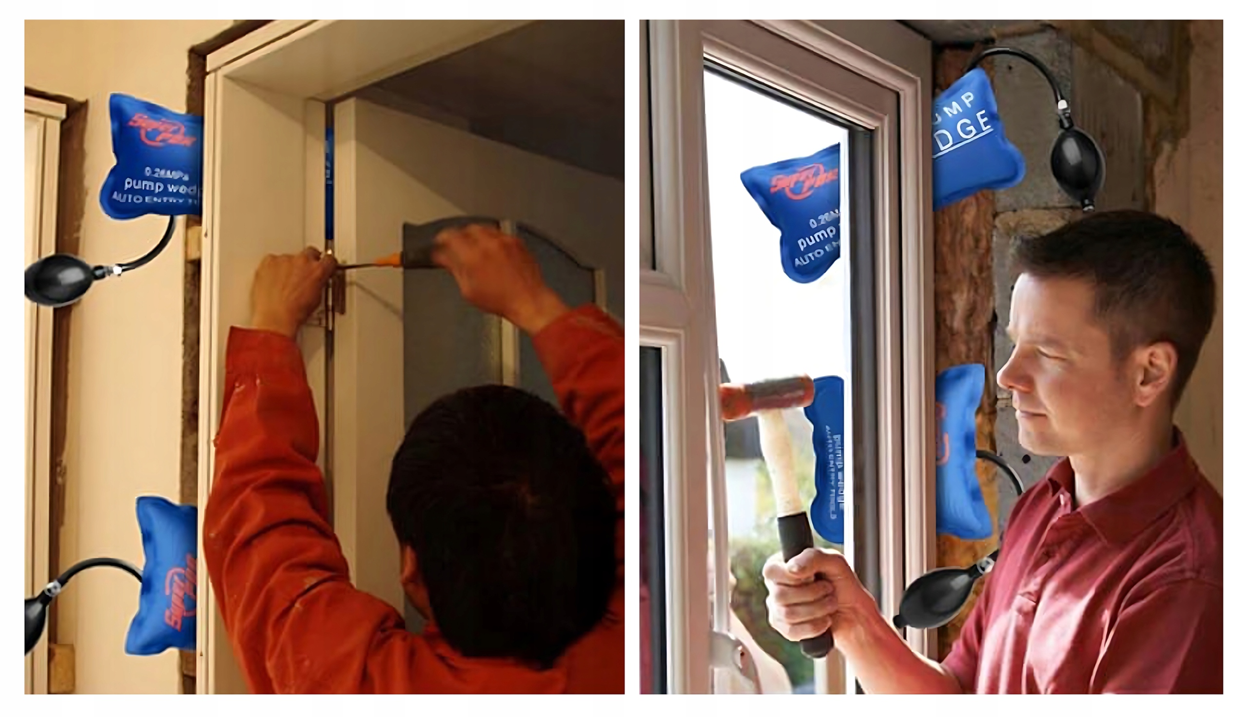 Pompka umożliwia szybkie regulowanie ilości powietrza w poduszce. Jej ergonomiczny kształt sprawia, że obsługa jest lekka i wygodna. Dokładne pompowanie pozwala łatwo ustawić drzwi, okna czy meble we właściwej pozycji. To praktyczne rozwiązanie, które świetnie sprawdza się podczas codziennych prac montażowych.