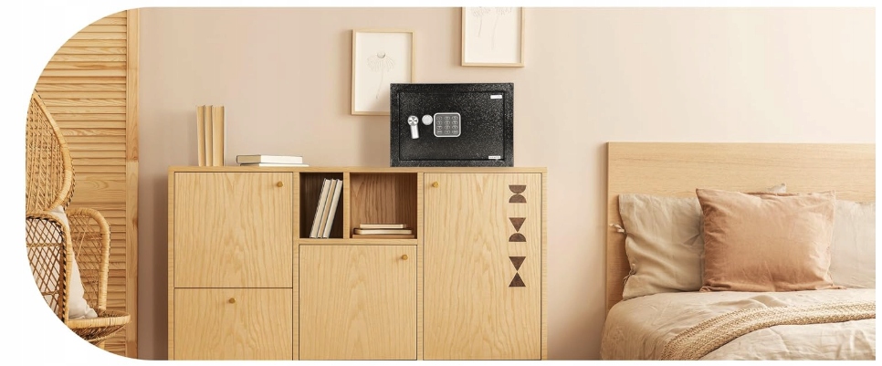 Sejf ma fabrycznie przygotowane otwory montażowe, dzięki czemu możesz go solidnie przymocować do ściany lub podłogi. To zwiększa ochronę przed wyrwaniem i umożliwia dyskretne umieszczenie nawet w małych przestrzeniach: szafkach, regałach, pod biurkiem.