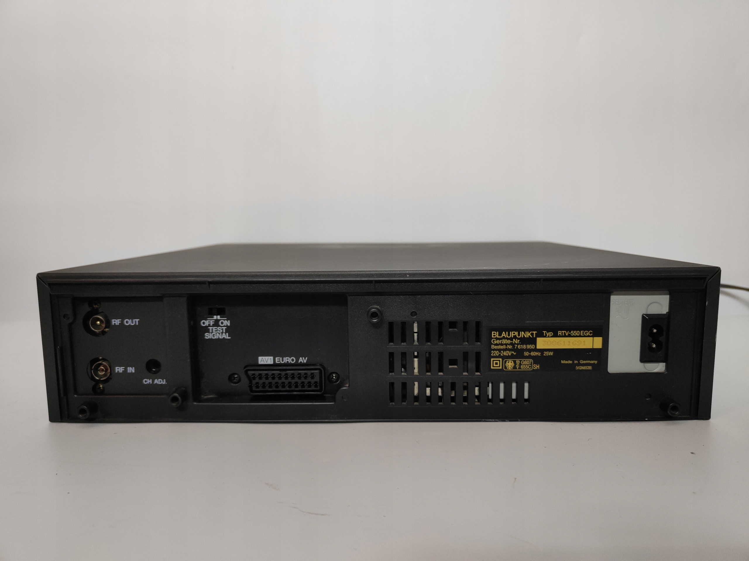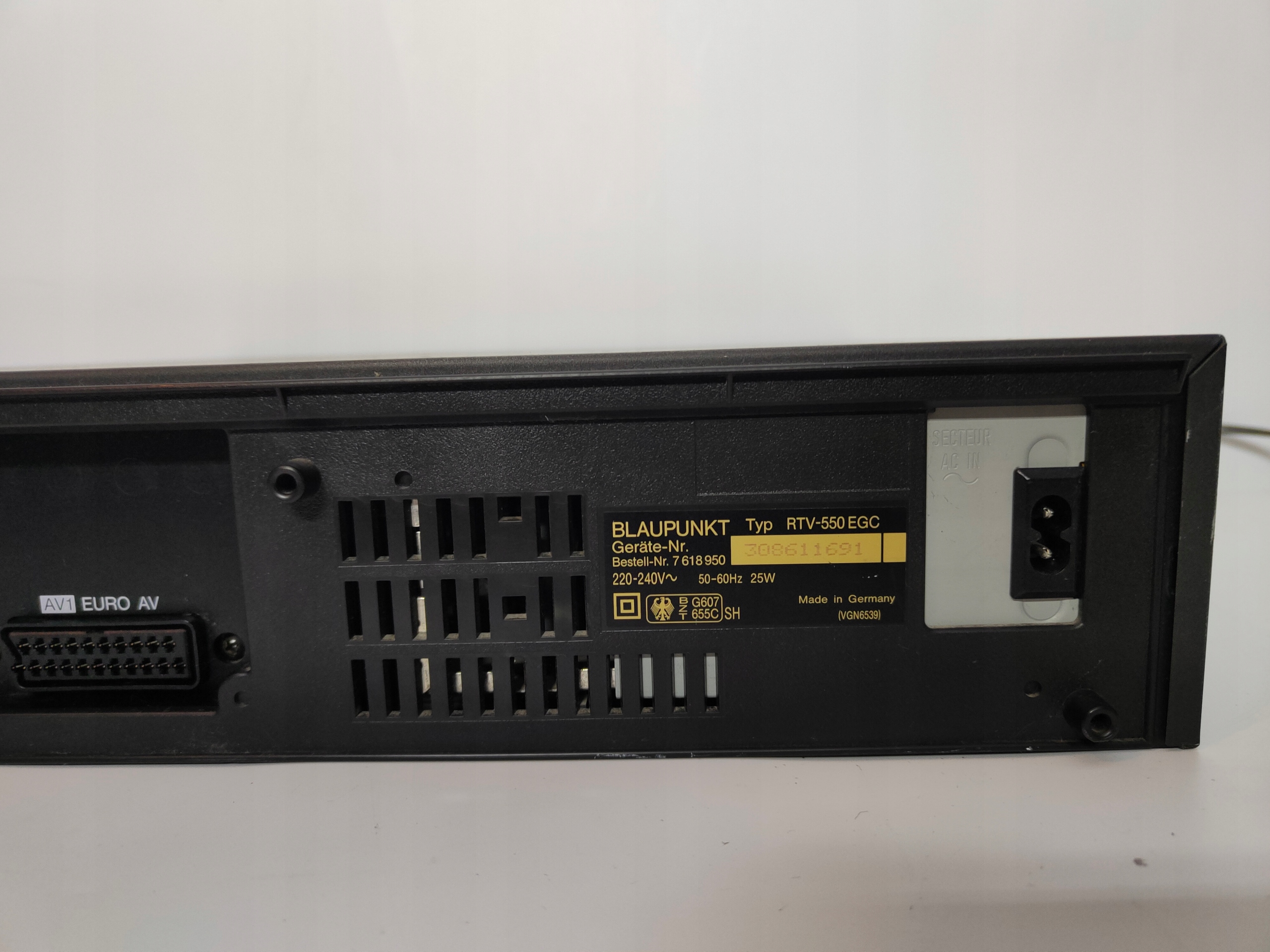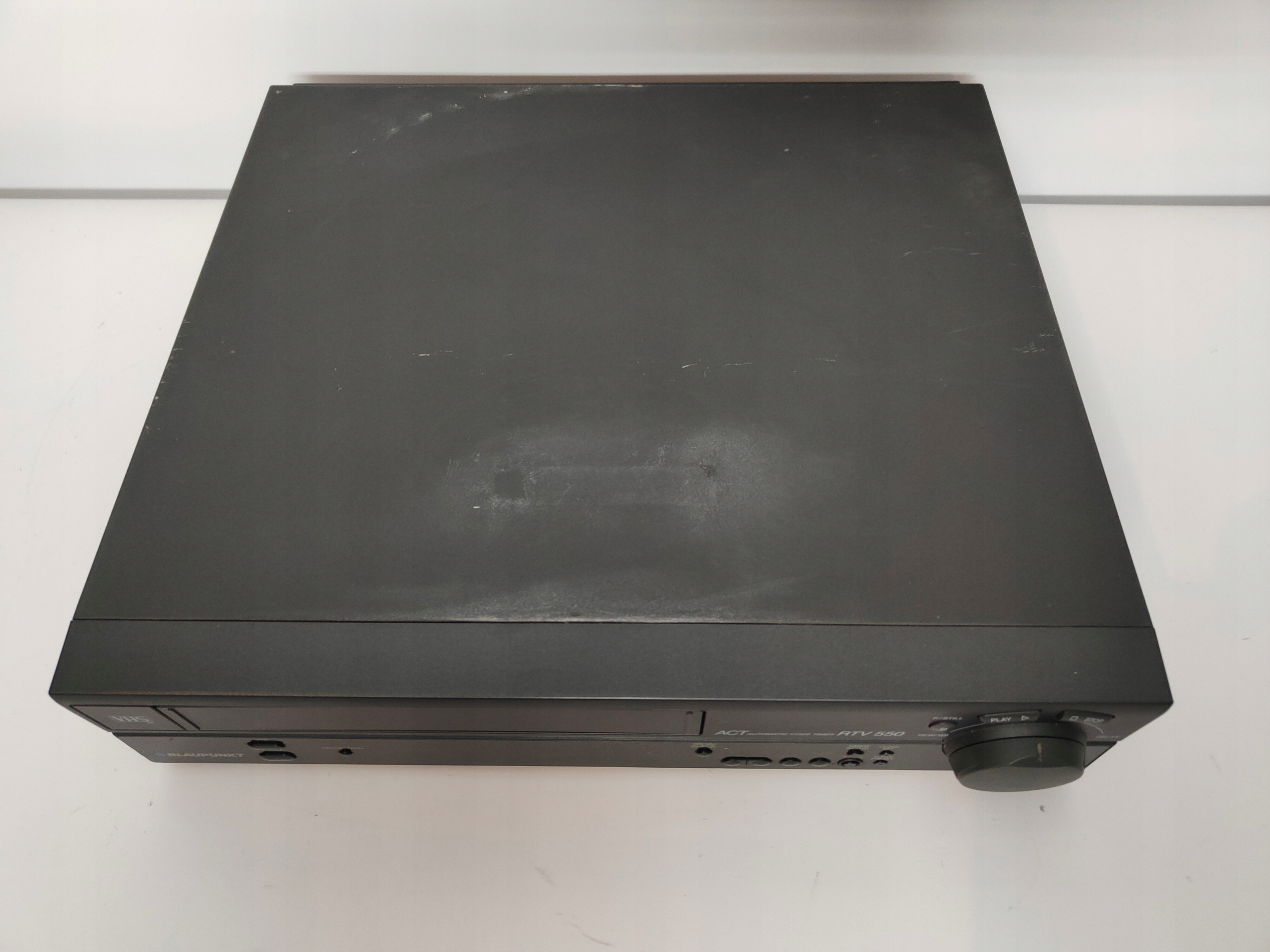Używany, uszkodzony magnetowid VHS BLAUPUNKT RTV-550. Uruchamia się, pobiera kasetę, słuchać działanie mechanizmu i po chwili wysuwa kasetę. Dalej nie sprawdzany. Wyświetlacz słabo świeci. Brak pilota, ale jest instrukcja nie w języku polskim. Wizualnie liczne zadrapania, przytarcia, przybrudzenia itp. Sprzedaję jako uszkodzony do naprawy lub na części.