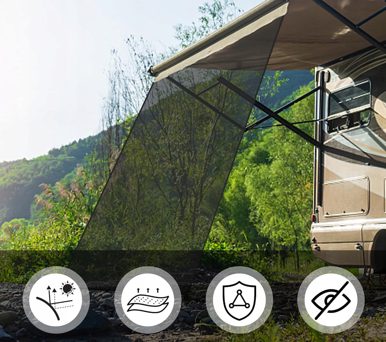 Ochrona przed słońcem: Stosowany jako przedni daszek do kampera, blokuje około 90% promieni UV, chroniąc skórę i oczy. Jednocześnie zapewnia szerokie pole widzenia.