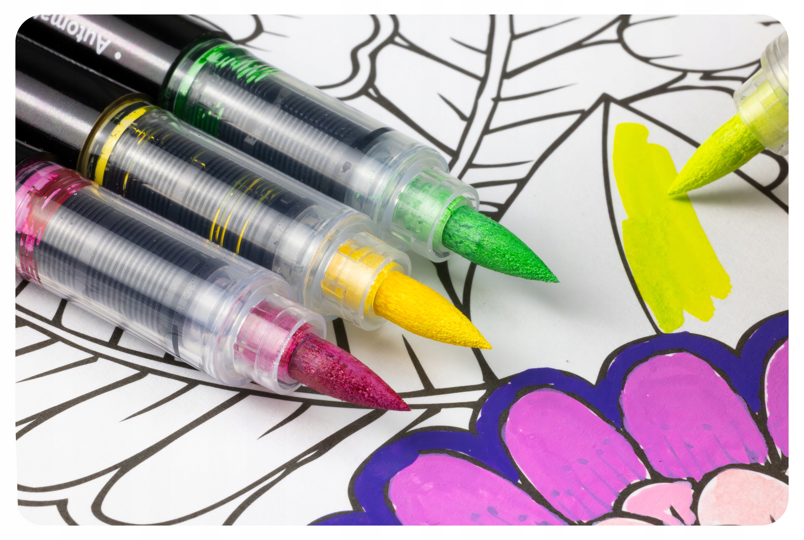 Każdy marker wyposażony jest w pędzelkową końcówkę, która umożliwia: