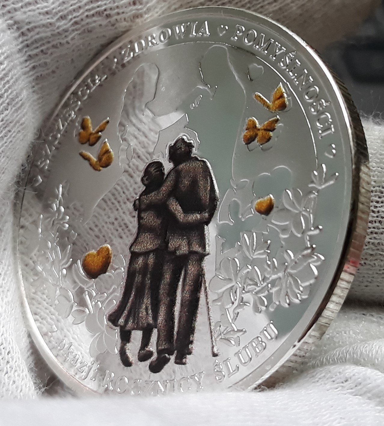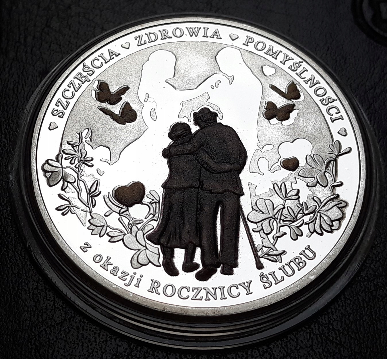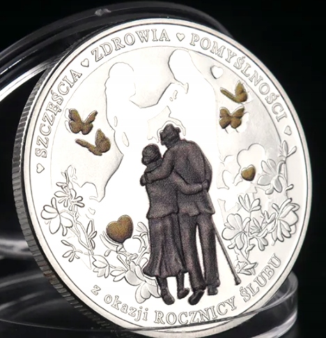 Z Okazji Rocznicy Ślubu, Szczęścia, Zdrowia, Pomyślności, Posrebrzany medal ,