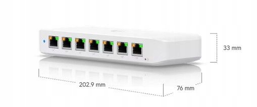 USW-Ultra działa jako przełącznik warstwy 2, obsługując zaawansowane funkcje, takie jak VLAN, mirroring portów i łączenie portów w celu ulepszonego zarządzania siecią i kontroli. Dzięki tym funkcjom, przełącznik ten umożliwia efektywne zarządzanie ruchem sieciowym i zwiększa bezpieczeństwo sieci.