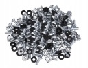 Śruby Rack służą do montowania różnych elementów w szafach typu Rack, które mają szerokość 10 cali lub 19 cali. Każdy zestaw składa się z śruby, specjalnej nakrętki, która pasuje do kwadratowych otworów, oraz podkładki z kołnierzem. Te elementy zapewniają stabilny i bezpieczny montaż urządzeń w szafie. Śruby są kompatybilne również z innymi kwadratowymi otworami, co zwiększa ich uniwersalność. Są wykonane z wysokiej jakości materiałów, takich jak stal dla śruby i nakrętki oraz tworzywo sztuczne dla podkładki, co zapewnia ich trwałość i odporność na uszkodzenia. Dzięki temu, że są dostępne w różnych kolorach, takich jak srebrny i czarny, można je dopasować do estetyki montowanych urządzeń oraz samej szafy Rack.