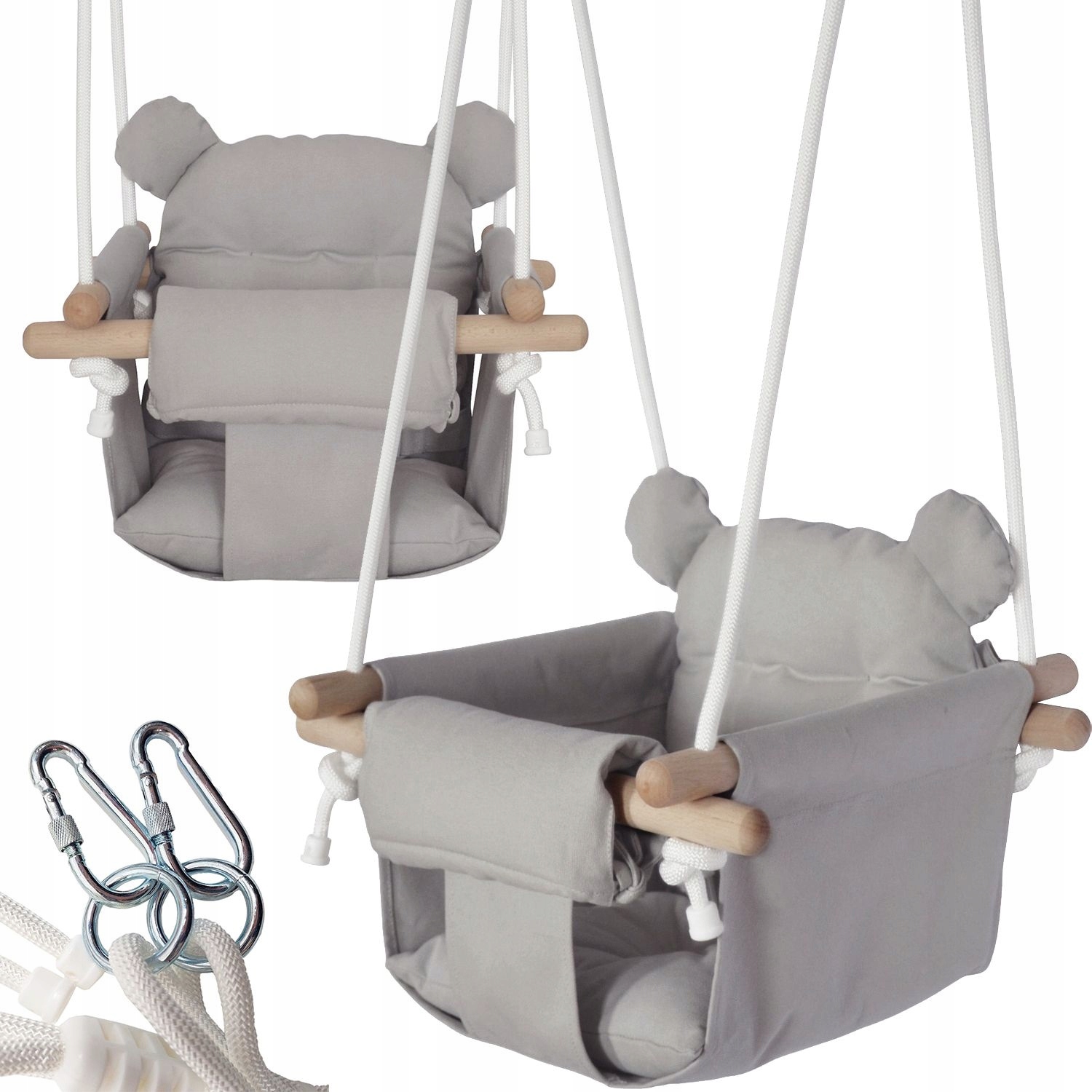 Wykonana z wysokiej jakości, wytrzymałego materiału w modnym, neutralnym kolorze, huśtawka idealnie wpasuje się do każdego wnętrza. Huśtawka jest gotowa do zawieszenia w domu lub w ogrodzie. Idealna jest dla dzieci w wieku od 6 do 36 miesięcy.