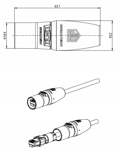 UWAGA: Złącze nie zawiera wtyku RJ45 – przeznaczone do instalacji na niezarobionych kablach.