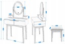 Duży, wygodny blat oraz praktyczne szuflady pozwalają zachować porządek i mieć wszystkie kosmetyki, akcesoria czy biżuterię zawsze pod ręką. Biała kolorystyka sprawia, że mebel wygląda elegancko i świeżo, świetnie komponując się z różnymi aranżacjami wnętrz – od klasycznych po nowoczesne. Dołączony do zestawu stabilny i wygodny taboret zapewnia maksymalny komfort podczas codziennych rytuałów pielęgnacyjnych