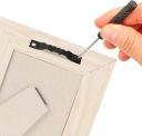 ✔️ Każdy haczyk ząbkowy mocowany jest na 2 śruby, co zapewnia pewne i stabilne zawieszenie ramki.