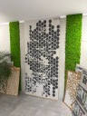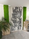 Unikatowy geometryczny wzór nadaje wnętrzu charakteru, głębi i designerskiego stylu, świetnie sprawdzając się w salonach, sypialniach, biurach, lokalach usługowych czy nowoczesnych apartamentach.