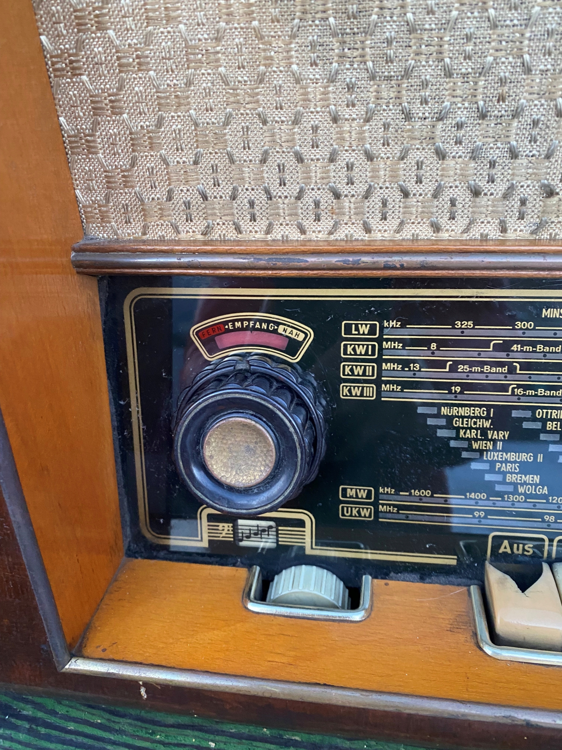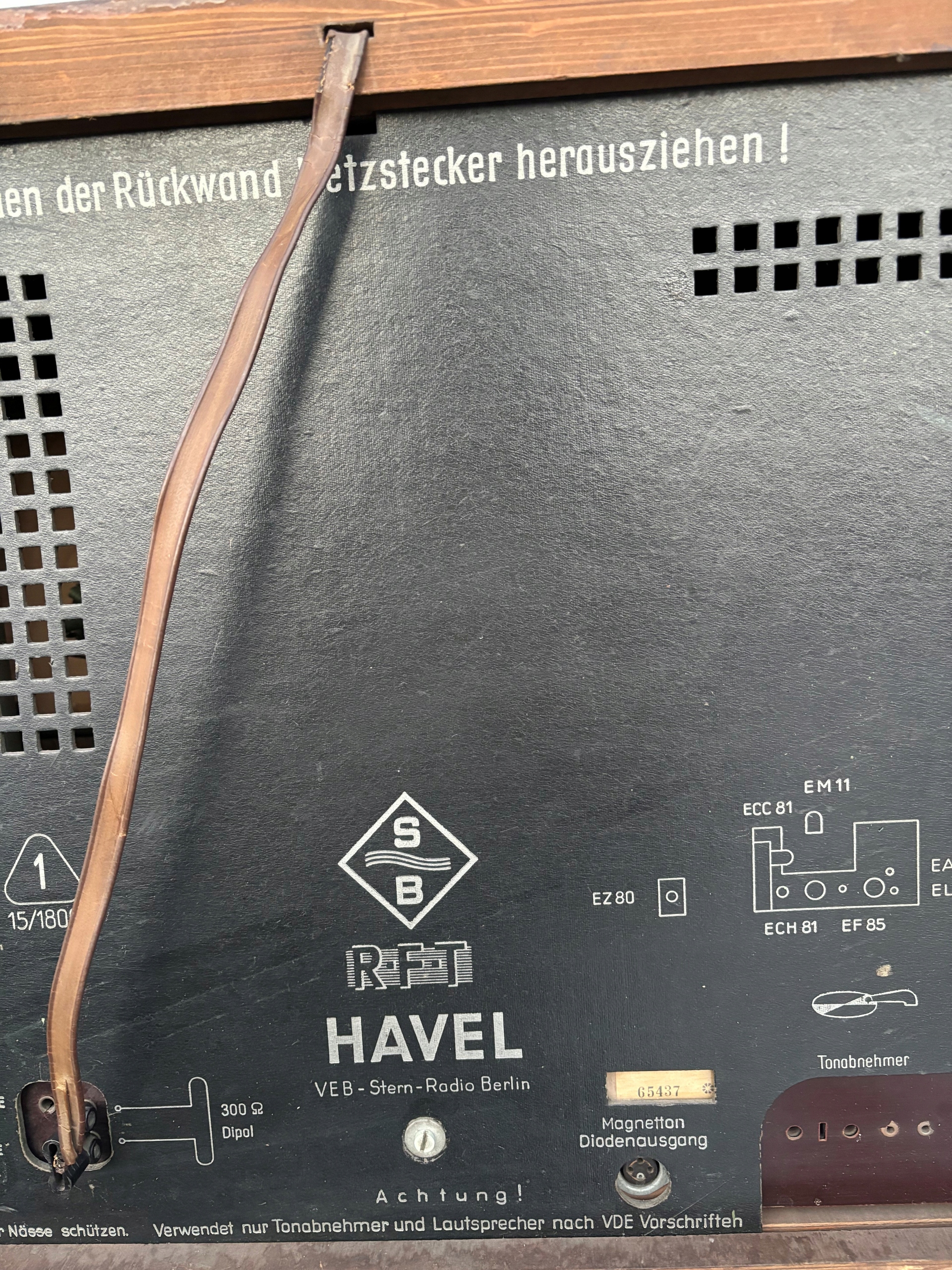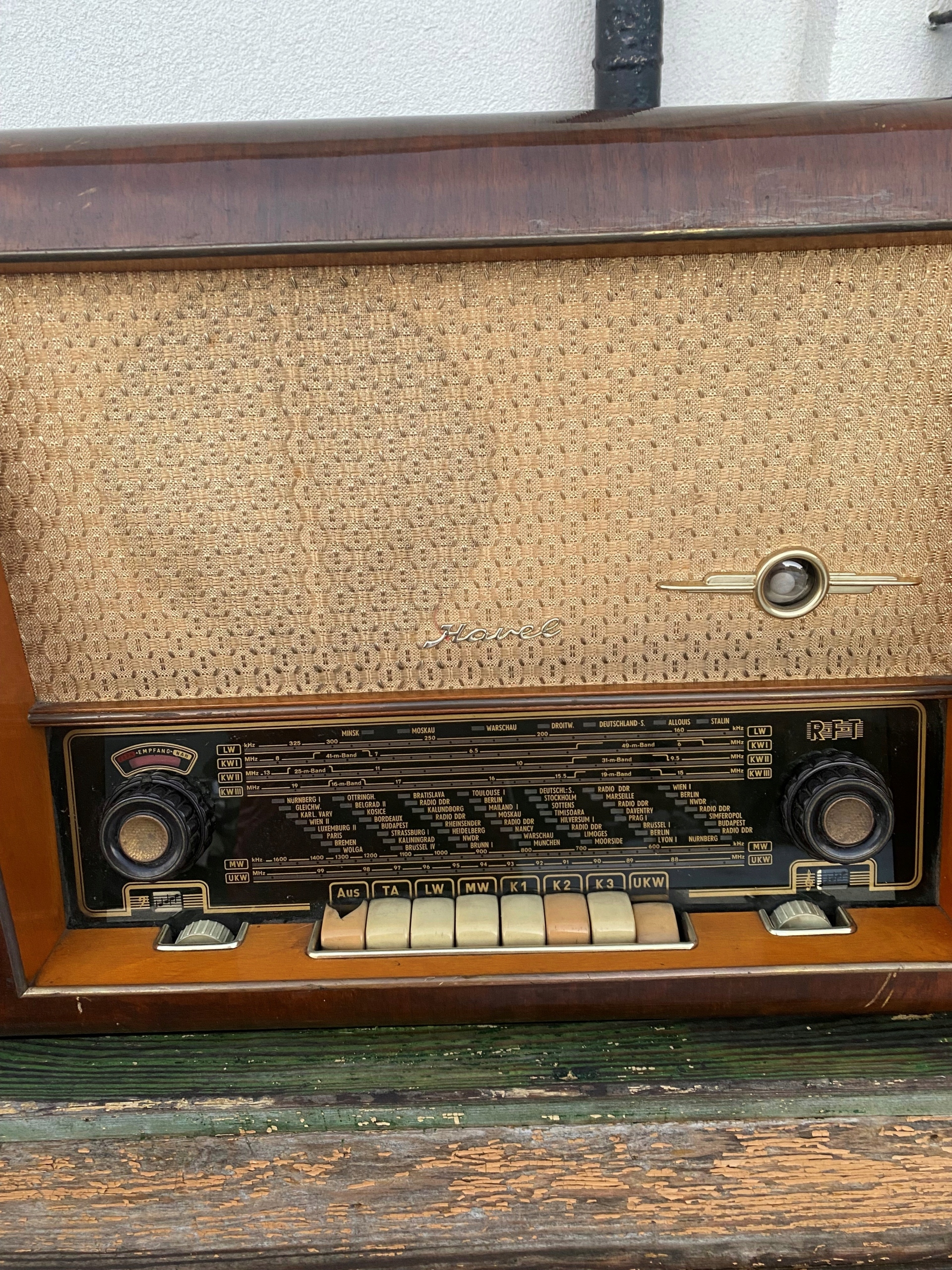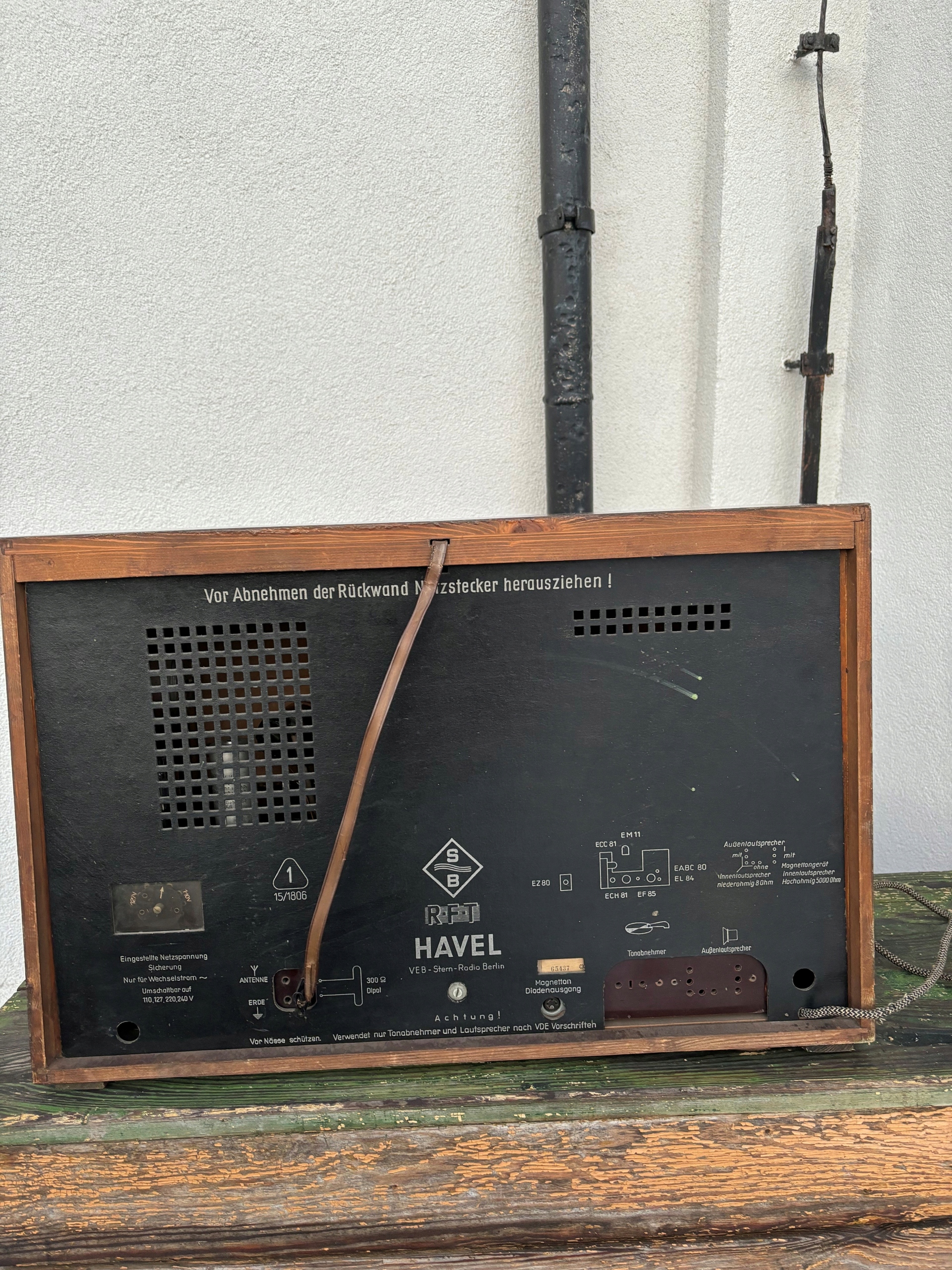 Stare RADIO Havel RFT Germany. Do renowacji. Skala chodzi, prąd nie dochodzi. Wymiary; wys.42,5 x 62,5 x 29,5 cm. Polecam
