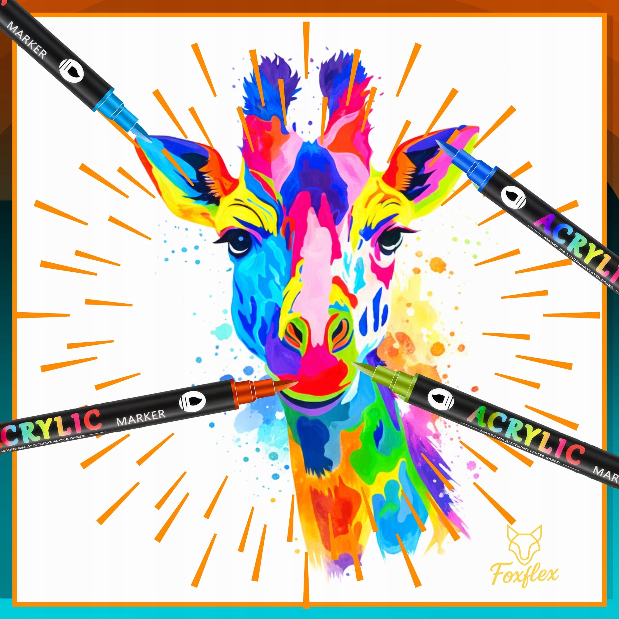 Markery akrylowe Foxflex® 24 sztuki / 48 kolorów to profesjonalny zestaw stworzony dla osób, które chcą tworzyć wyraziste, trwałe i efektowne projekty na różnych powierzchniach. Dzięki wodnej formule tuszu są bezpieczne, niemal bezwonne i komfortowe w użytkowaniu zarówno przez dzieci, jak i dorosłych. Dwustronne końcówki pozwalają na precyzyjne detale oraz większe wypełnienia, a intensywna paleta kolorów daje pełną swobodę twórczą. Idealne do dekorowania kamieni, personalizowania prezentów, tworzenia plakatów, ozdób DIY oraz projektów artystycznych w domu i szkole.