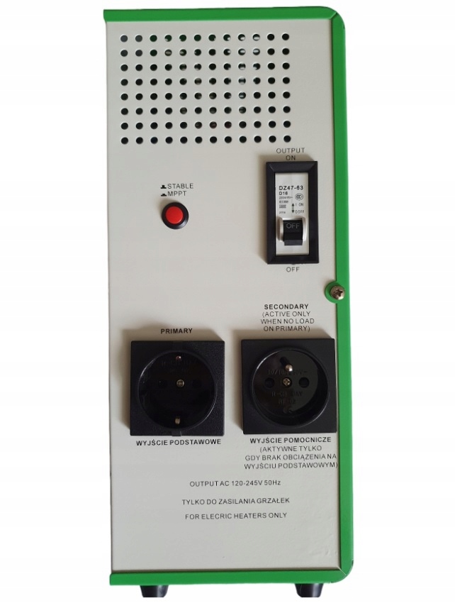 Maksymalna moc sytemu to 3.5kW, przetwornica posiada wyjście priorytetowe numer "1" oraz wyjście zależne numer "2".