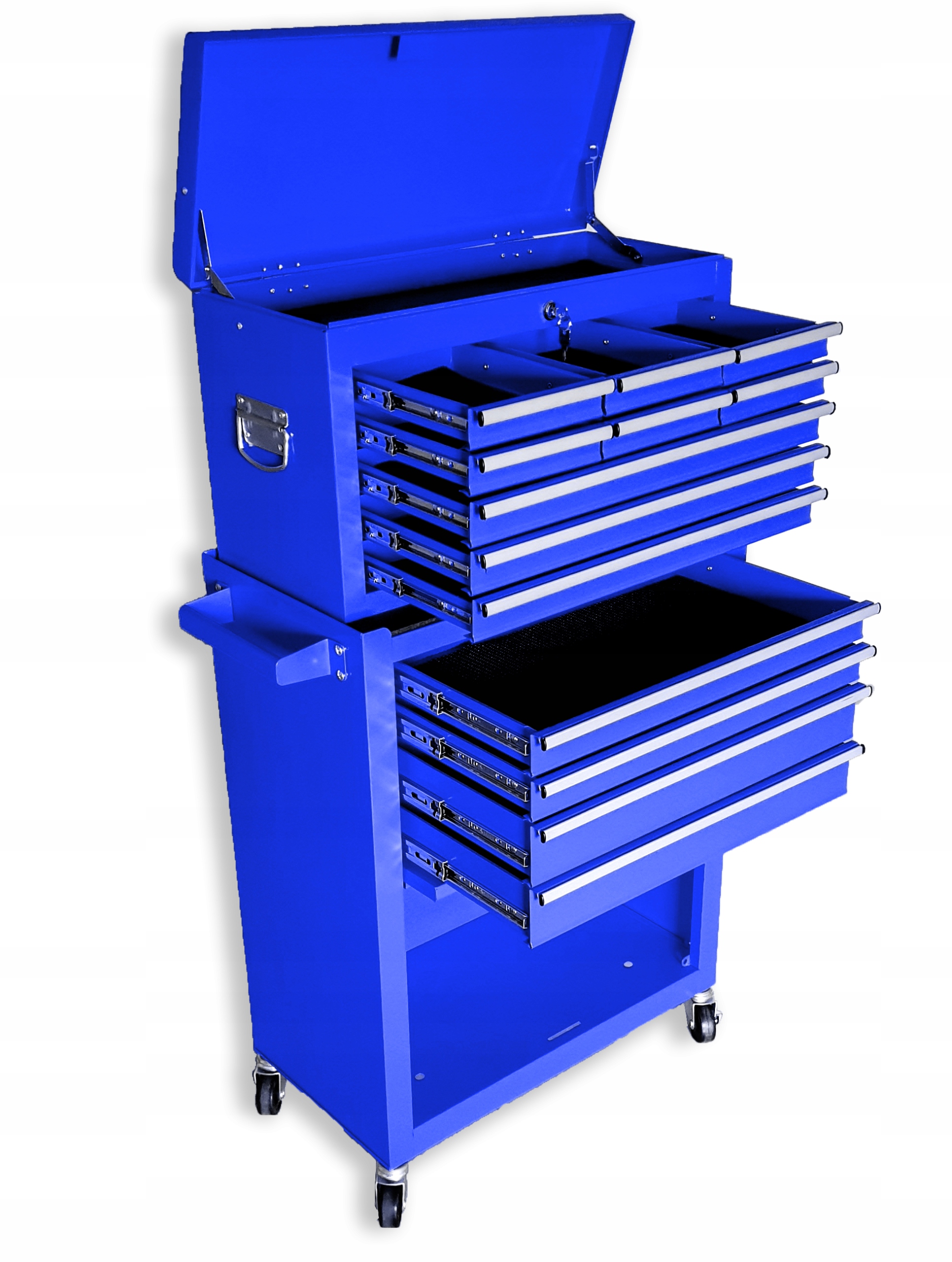 Wózek narzędziowy - Szafka warsztatowa 13 szuflad NIEBIESKI - PODWYŻSZANY