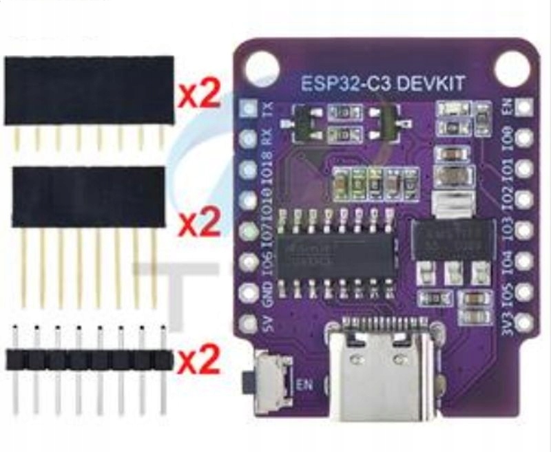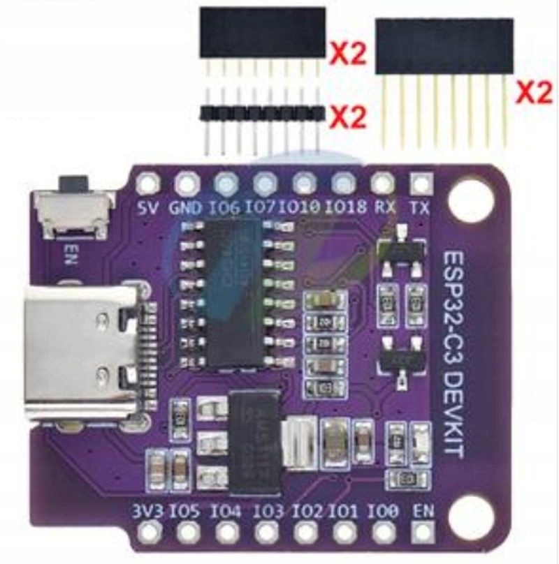 Płytka ESP32-C3 MINI z modułem ESP32-C3-MINI-1 to zaawansowany moduł z obsługą 2.4 GHz Wi-Fi i Bluetooth 5 (LE). Złącze USB-C do programowania lub zasilania modułu. Idealne rozwiązanie dla szerokiej gamy aplikacji IoT, takich jak inteligentny dom, automatyka przemysłowa.