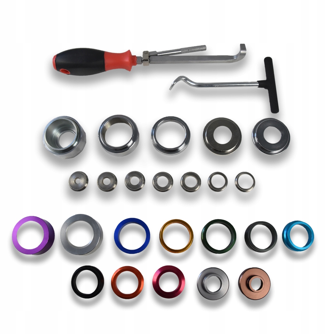 Ten 28-częściowy zestaw narzędzi pomoże każdemu kto zabiera się za montaż lub demontaż pierścieni uszczelniających. Nadaje się do większości wciskanych pierścieni uszczelniających, np. na wałach rozrządu, wałach korbowych itp.