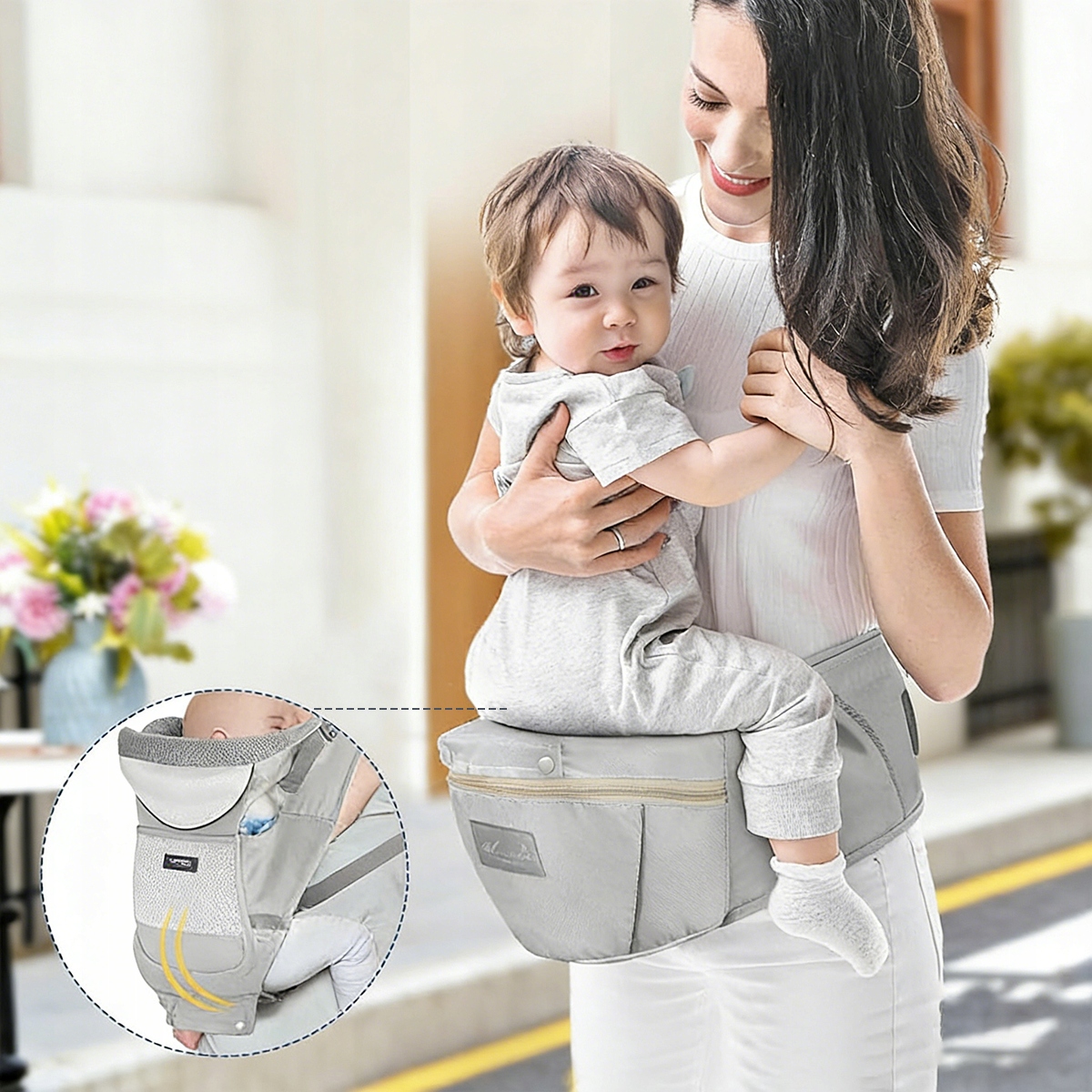 Nosidełko zostało opracowane w oparciu o ergonomiczny kształt litery M. Ten kształt, rekomendowany przez międzynarodowe instytucje, skutecznie redukuje nacisk na stawy biodrowe dziecka i zapobiega ich zwichnięciu, zapewniając tym samym prawidłowy rozwój kości. Siedzisko, wypełnione pianką memory 3D, dopasowuje się do kształtu ciała dziecka i zapobiega powstawaniu punktów ucisku.