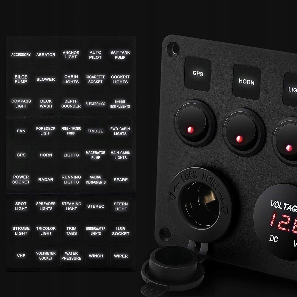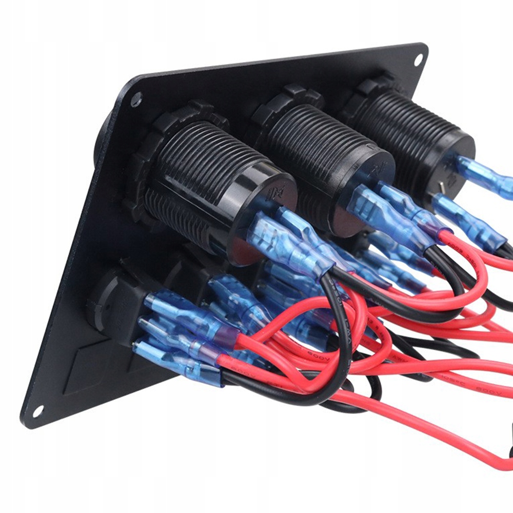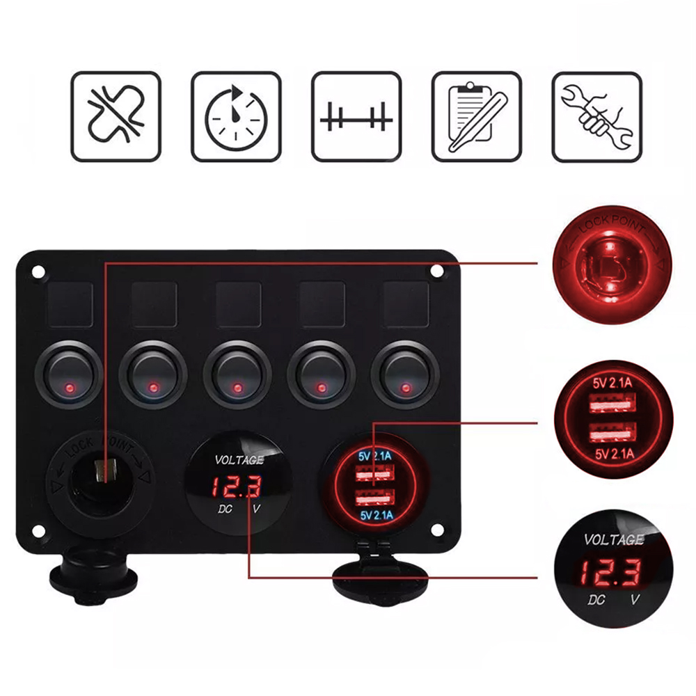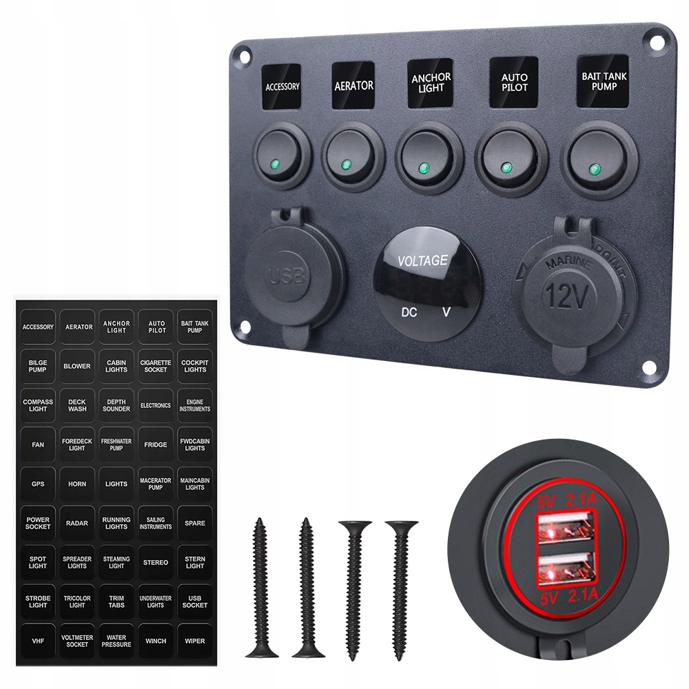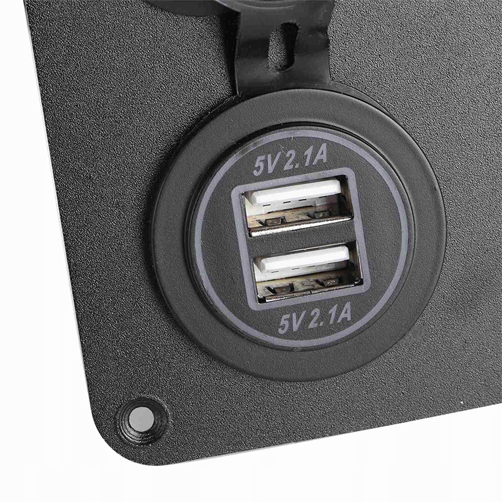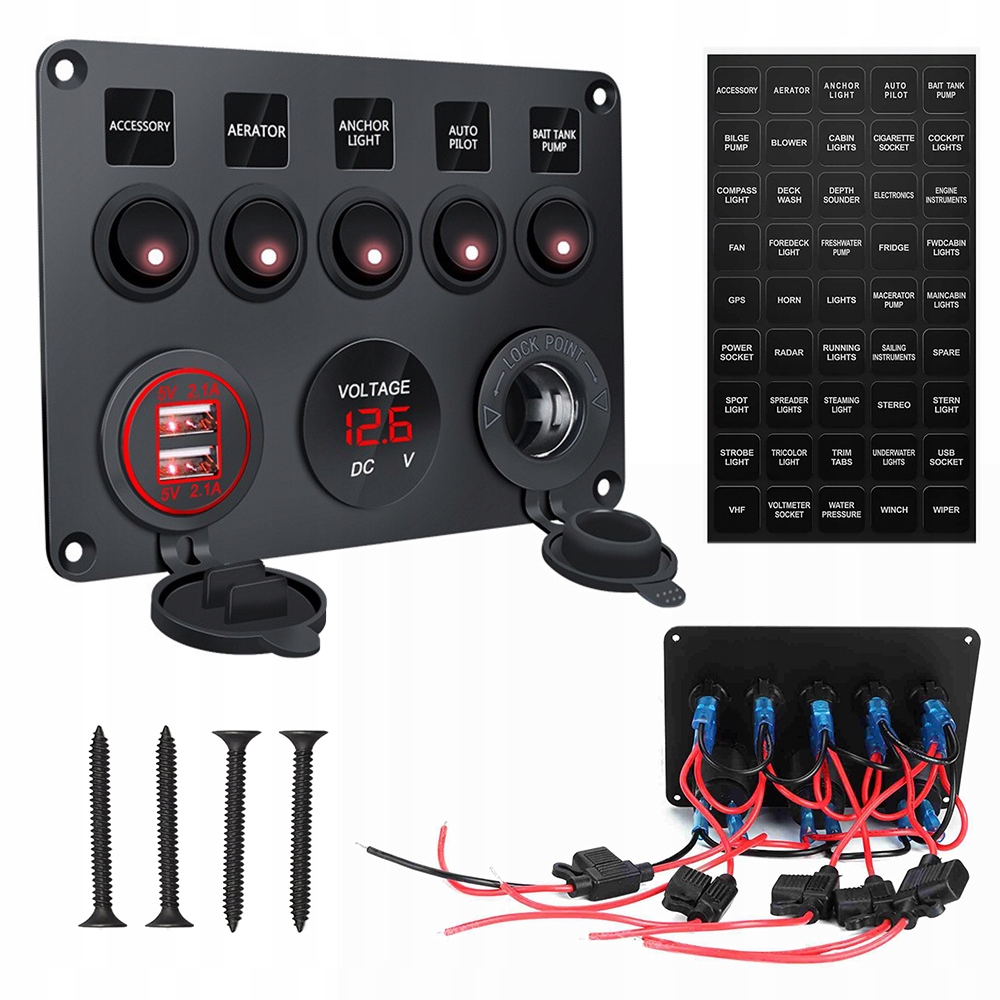 5. Zawiera 5 przełączników, podwójną ładowarkę samochodową USB, cyfrowy woltomierz i gniazdo zasilania.
