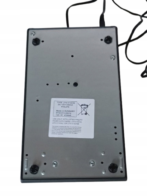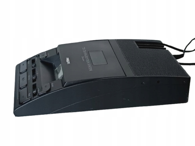 Dyktafon Philips LFH 720 Transcription System po podłączeniu do zasilania włącza się – urządzenie wydaje dźwięk (szum), a wyświetlacz działa co wskazuje na obecność zasilania.