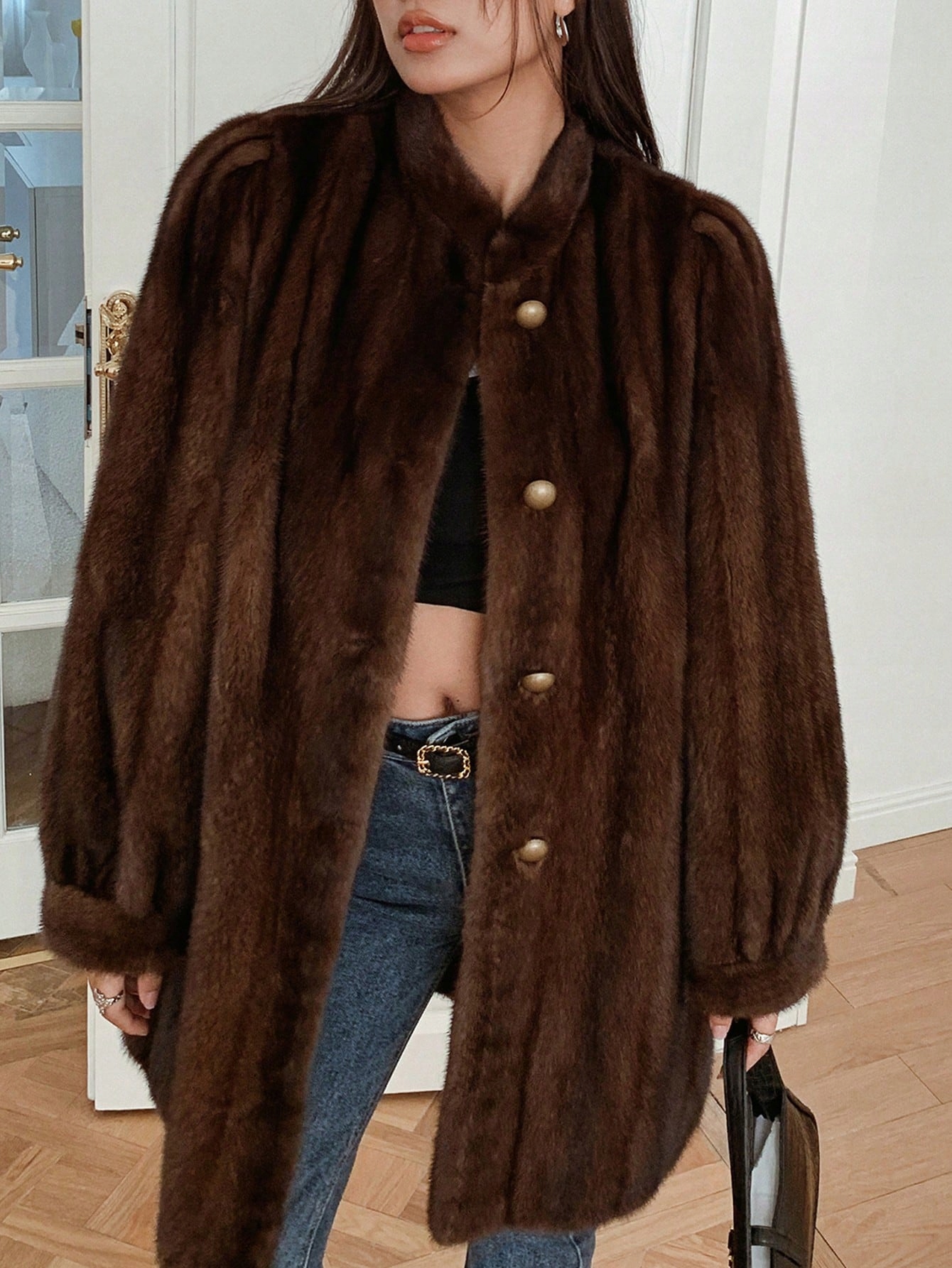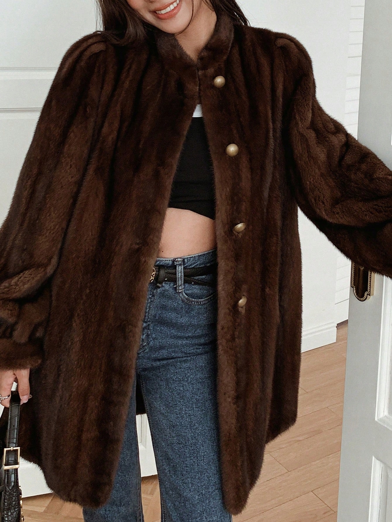 ЖЕНСКАЯ МЕХОВАЯ МИДИ СТИЛЬНАЯ МОДНАЯ ГЛАМУРНАЯ КОРИЧНЕВАЯ ШЕИН M 38