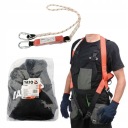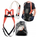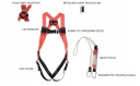 Zestaw szelek bezpieczeństwa z amortyzatorem YT-74235 to elementy systemu przeznaczonego do zabezpieczenia osób przed upadkiem z wysokości. Prawidłowo założone szelki muszą ściśle przylegać do tułowia oraz ud, by wraz z dedykowanym punktem zaczepowym móc równomiernie rozłożyć siły działające na ciało w trakcie upadku. Amortyzator, dzięki odpowiednio pozszywanej taśmie poliestrowej, podczas powstrzymywania spadania ulega stopniowemu rozpruciu, spowalniając tym samym prędkość upadku. Amortyzator łączy szelki z punktem kotwiczącym.