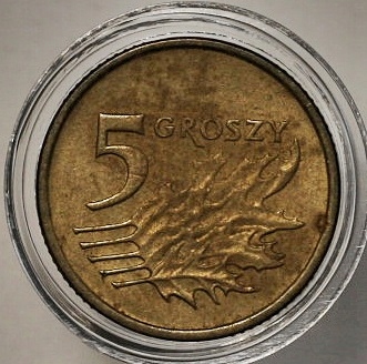Oferuję DESTRUKT monety obiegowej III RP 5 GROSZY 200 rok w stanie zachowania 1- widocznym na załączonych zdjęciach. Prawdopodobnie przy biciu monety był zapchany stempel, gdyż pod dużym powiększeniem widoczna jest cyfra "0" oznaczająca, że powinien to być rok 2000. W kolekcjach monet bitych maszynowo w wielkich ilościach, nie ilość świadczy o jej jakości, a ilość rzadkości się w niej znajdujących. Najciekawsze są błędy bicia powstałe przez przypadek jak w tej monecie. Polecam.