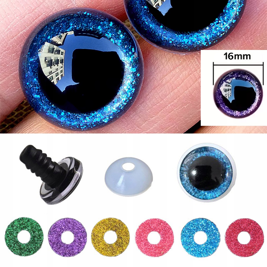 Ten zestaw 60 dużych, kolorowych oczu 16 mm to idealny wybór dla twórców pluszaków, lalek handmade, amigurumi oraz projektów DIY. Brokatowy efekt pięknie odbija światło, nadając zabawkom głębi, wyrazu i profesjonalnego wyglądu.