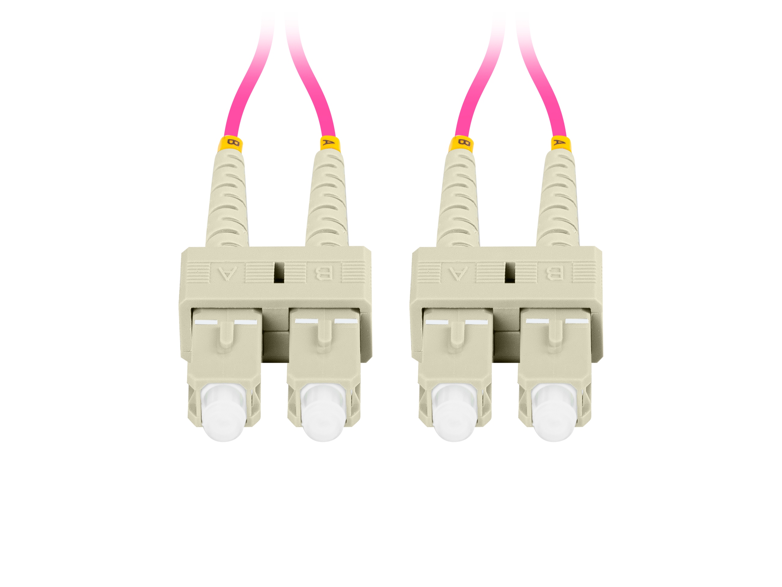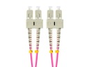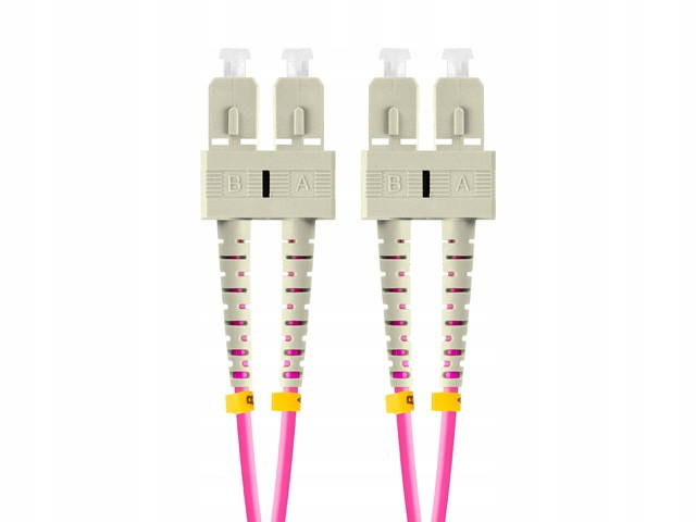 Typ złącza: SC Standard polerowania: UPC Rodzaj włókna: OM4 Rodzaj światłowodu: wielomodowy (MM) Średnica włókna: 50/125 µm Konstrukcja przewodu: DUPLEX Średnica przewodu: 3.0 mm Powłoka: LSZH Tłumienność wtrąceniowa: 0,20 dB Tłumienność odbiciowa: > 50 dB Temperatura pracy: -40 – 85 °C Minimalny promień zgięcia: 7.5 mm Kolor: Fioletowy Długość kabla: 1m