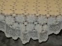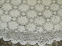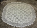 PIĘKNY, SZYDEŁKOWY SOLIDNY OBRUS Z BAWEŁNIANYCH NICI W DEKORACYJNY WZÓR ROZETEK, W KREMOWYM KOLORZE. OBRUS MA KSZTAŁT "KWADRATOWEGO" KOŁA