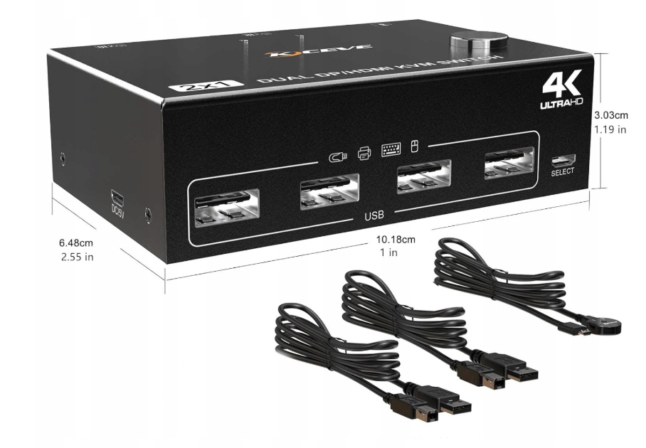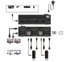 Przełącznik pozwala na osiągnięcie 4K Ultra HD przy 60Hz, co zapewnia doskonałą jakość obrazu. Aby uzyskać rozdzielczość 4K@60Hz, należy użyć kabli HDMI 2.0 oraz DP 1.4, które są dołączone w zestawie, jednak użytkownicy muszą przygotować pozostałe kable. Przełącznik nie wymaga zewnętrznego zasilania, jednak użytkownik musi podłączyć kabel USB, aby zapewnić odpowiednią moc urządzenia.