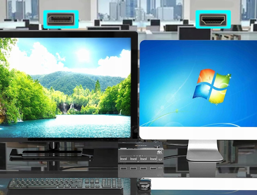 Przełącznik KVM dla podwójnych monitorów w technologii HDMI i DP to idealne rozwiązanie dla osób korzystających z urządzeń wyposażonych w porty DP i HDMI. Umożliwia on współdzielenie klawiatury, myszy oraz monitorów pomiędzy dwoma komputerami. W trybie kopiowania, główny ekran może być odzwierciedlony na drugim wyjściowym ekranie, natomiast w trybie rozszerzenia, okna mogą być przenoszone z głównego ekranu na drugi ekran. Użytkownicy mają do wyboru dwa tryby przełączania, które wspierają zarówno przyciski fizyczne, jak i sterowanie za pomocą przewodu.