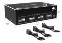 Warto również podkreślić, że przełącznik wyposażony jest w 4 porty USB 2.0, co umożliwia łatwe współdzielenie m.in. myszy, klawiatury oraz urządzeń takich jak drukarki czy skanery. Kompatybilny jest z różnymi systemami operacyjnymi, w tym Windows 10/7/2000/XP/Vista, Linux, Unix, Ubuntu oraz Fedora. Należy jednak pamiętać, że korzystanie z Macbooka może wiązać się z ograniczoną kompatybilnością. Dzięki funkcji plug and play, urządzenie jest łatwe w użyciu i znajduje zastosowanie w różnych miejscach, takich jak biura, konferencje, czy domowe kina.