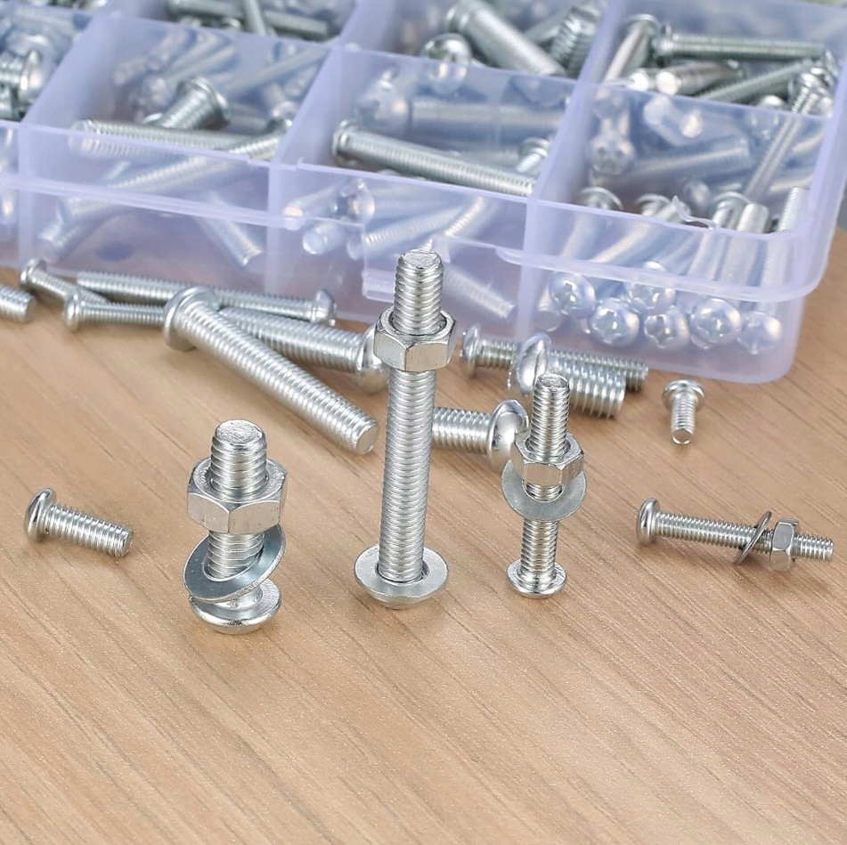 Praktyczny zestaw śrub, nakrętek, podkładek i wkrętów M3–M6 (1200 szt.) to niezbędnik każdego majsterkowicza i profesjonalisty. Dzięki dużej liczbie elementów oraz solidnemu organizerowi z opaskami rzepowymi masz wszystko pod ręką — zawsze gotowe do działania!