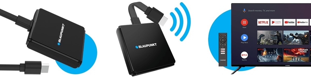 Blaupunkt TV stick A-stream sam wyszuka dostępne do podłączenia sieci Wi-Fi, wystarczy wprowadzić hasło, a nieograniczone możliwości Internetu będą dostępne.