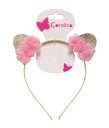 Opaska z uszkami i kwiatkami. Odcienie złota i różu