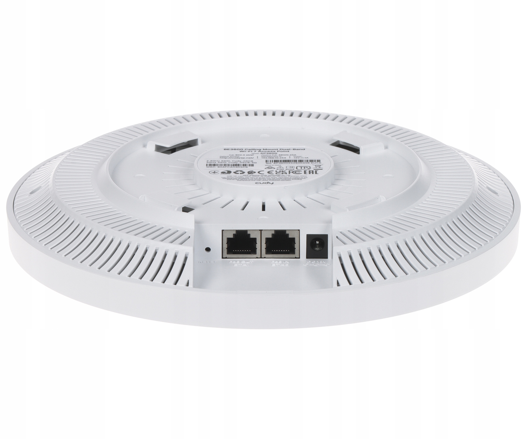 Cudy AP3600. 2,4 GHz, 5 GHz, Maksymalna prędkość transmisji danych: 2882 Mbit/s, Szybkość transmisji danych przez Ethernet LAN: 10,100,1000,2500 Mbit/s. Kolor produktu: Biały. Maksymalne zużycie energii: 10 W