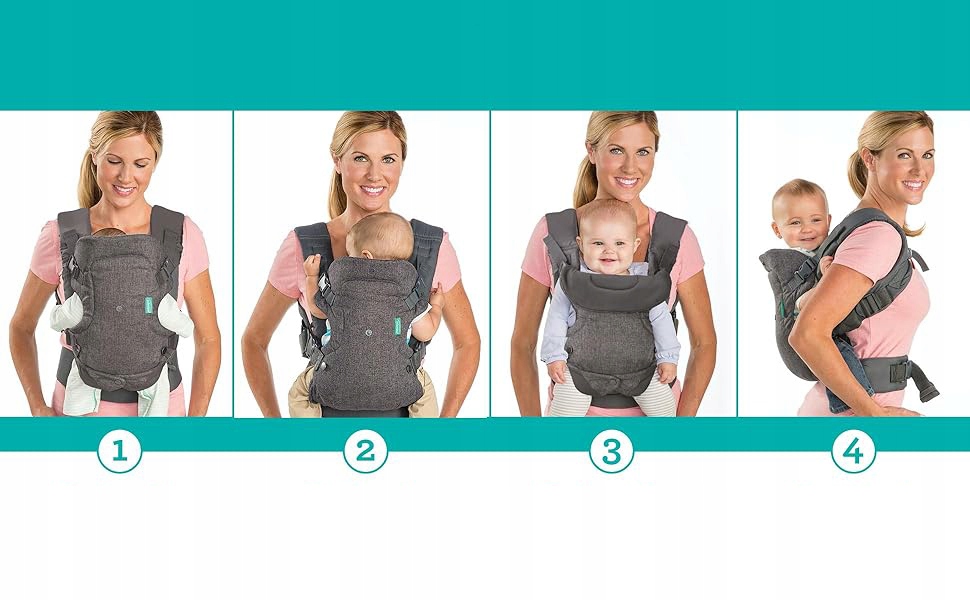 Nasze nosidełko dla niemowląt oferuje cztery regulowane rozmiary, aby dopasować się do niemowląt o wadze od 0 do 15 kg. Niezależnie od rozmiaru dziecka, zapewnia bezpieczne dopasowanie i ergonomiczną, naturalną krzywą "M", aby zapewnić zdrowy rozwój bioder i kręgosłupa. Wyściełane otwory na nogi zapewniają niezakłócone krążenie krwi w nogach dziecka, zapewniając wygodę i poczucie bezpieczeństwa.