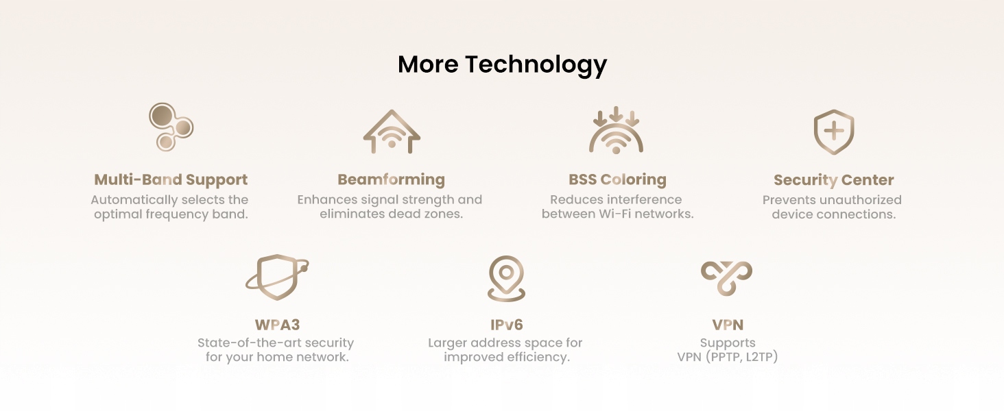 MLO dla ultrawydajnej łączności – Technologia Multi-Link Operation (MLO) inteligentnie łączy wiele pasm, zapewniając mniejsze opóźnienia, wyższe prędkości oraz stabilniejsze połączenia dla ponad 160 urządzeń jednocześnie. Gwarantuje niezawodne działanie podczas strumieniowania, gier oraz w rodzinach z wieloma użytkownikami.