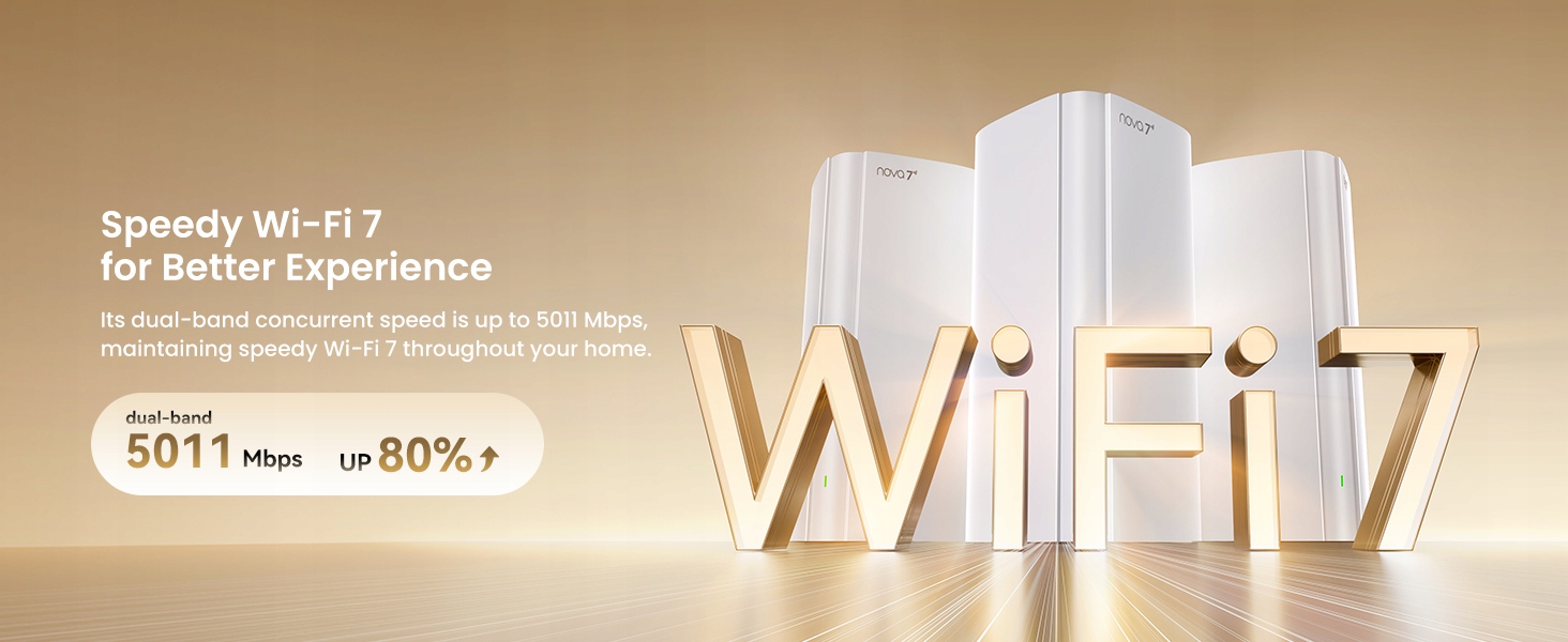 Ekstremalnie szybka prędkość Wi-Fi 7 – Osiąga prędkość do 4323 Mb/s (5 GHz) i 688 Mb/s (2,4 GHz) dzięki nowoczesnym technologiom Wi-Fi 7, w tym 4K-QAM, Multi-RU oraz MLO. Oferuje wydajność nawet o 60% wyższą niż Wi-Fi 6. Idealne do strumieniowania 4K, gier oraz urządzeń inteligentnego domu.