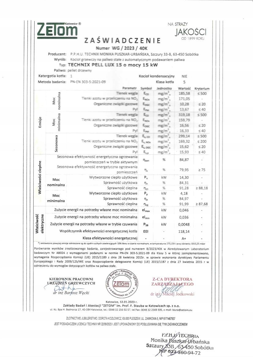 DOKUMENTACJA OD KOTŁA, PALNIKA, STEROWNIKA, WENTYLATORA