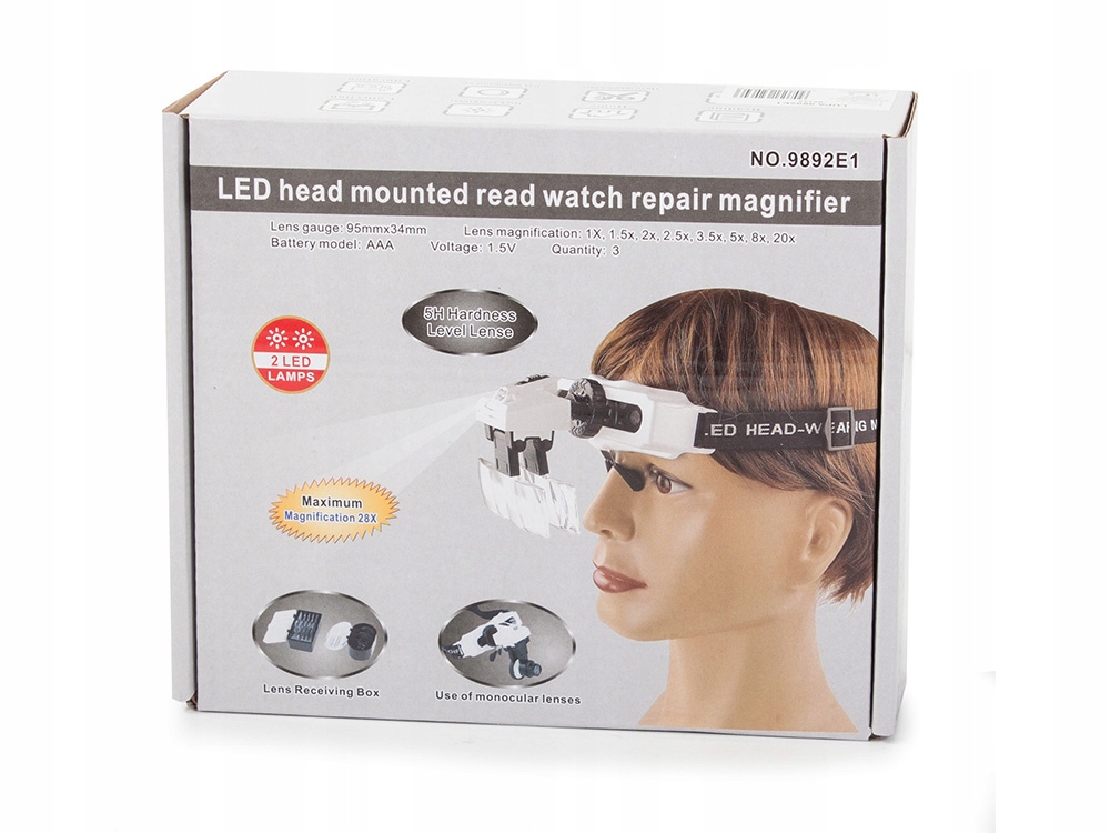 ✅Lupa nagłowna 2 led na głowę czołowa okulary 28x