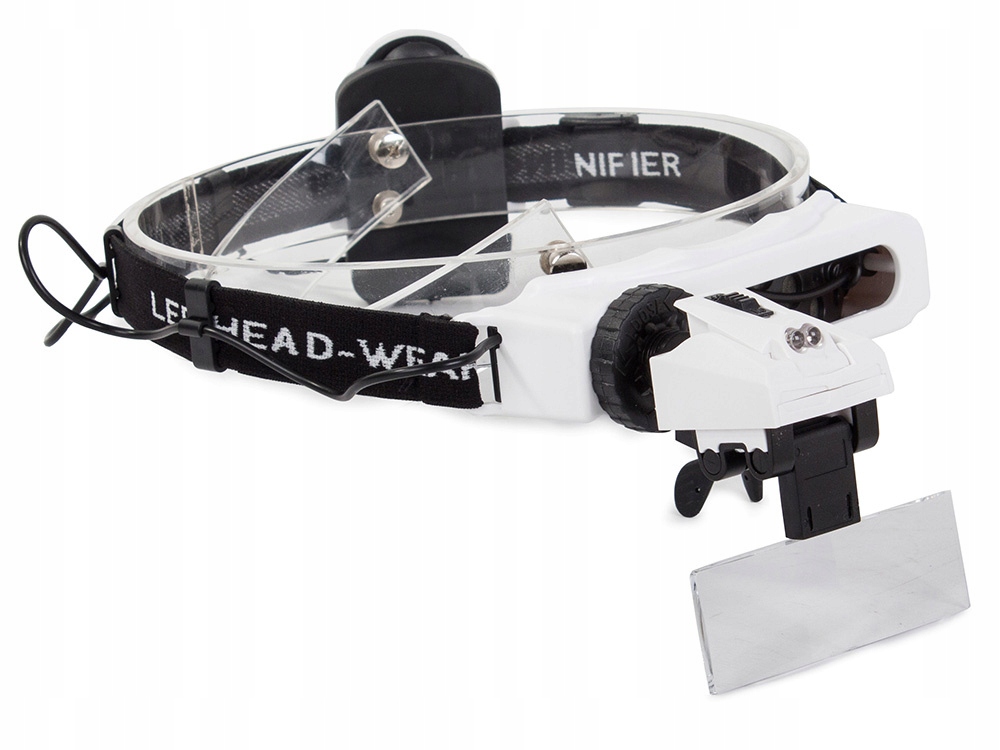 Diody LED można regulować kąt pochylenia w zależności od potrzeb. Cały mechanizm jest oparty w formie wygodnej gumowej opaski na głowę. W miejscu styczności z czołem, lupa wyściełana jest bardzo miękkim, delikatnym dla skóry materiałem.