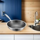 Wok UPKOCH 32 cm to praktyczna patelnia ze stali nierdzewnej, zaprojektowana do codziennego gotowania. Powłoka o strukturze plastra miodu zapewnia odporność na zarysowania i łatwe utrzymanie czystości, a odpowiednio wyprofilowane ściany ułatwiają mieszanie składników bez wylewania.