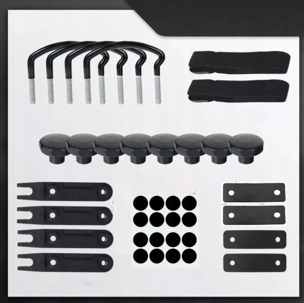 2. Obfitość: To bogaty zestaw akcesoriów do montażu boksu dachowego, w tym 4 metalowe zaciski U-bolt, 4 plastikowe płyty podkładowe, 4 gumowe uszczelki, 8 wytrzymałych nakrętek zabezpieczających, 2 bandaże i 1 zestaw naklejek uszczelniających otwory, wystarczający do zaspokojenia Twoich długoterminowych potrzeb.