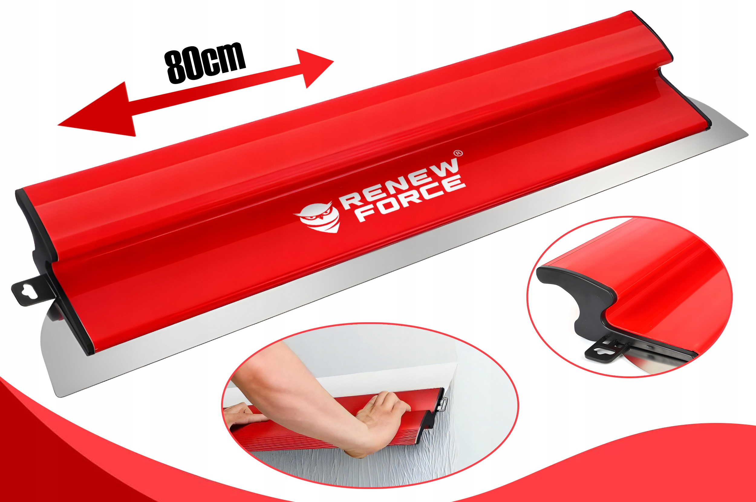 Nóż do gładzi RENEW FORCE® 80 cm to potężne narzędzie dla profesjonalistów i osób samodzielnie remontujących swoje wnętrza. Dzięki elastycznemu ostrzu ze stali nierdzewnej o grubości 0,3 mm i imponującej szerokości roboczej 80 cm, praca na dużych powierzchniach staje się znacznie szybsza, lżejsza i bardziej efektywna. Wymienne ostrze, lekka konstrukcja oraz ergonomiczny chwyt sprawiają, że narzędzie doskonale sprawdza się nawet podczas wielogodzinnych realizacji.