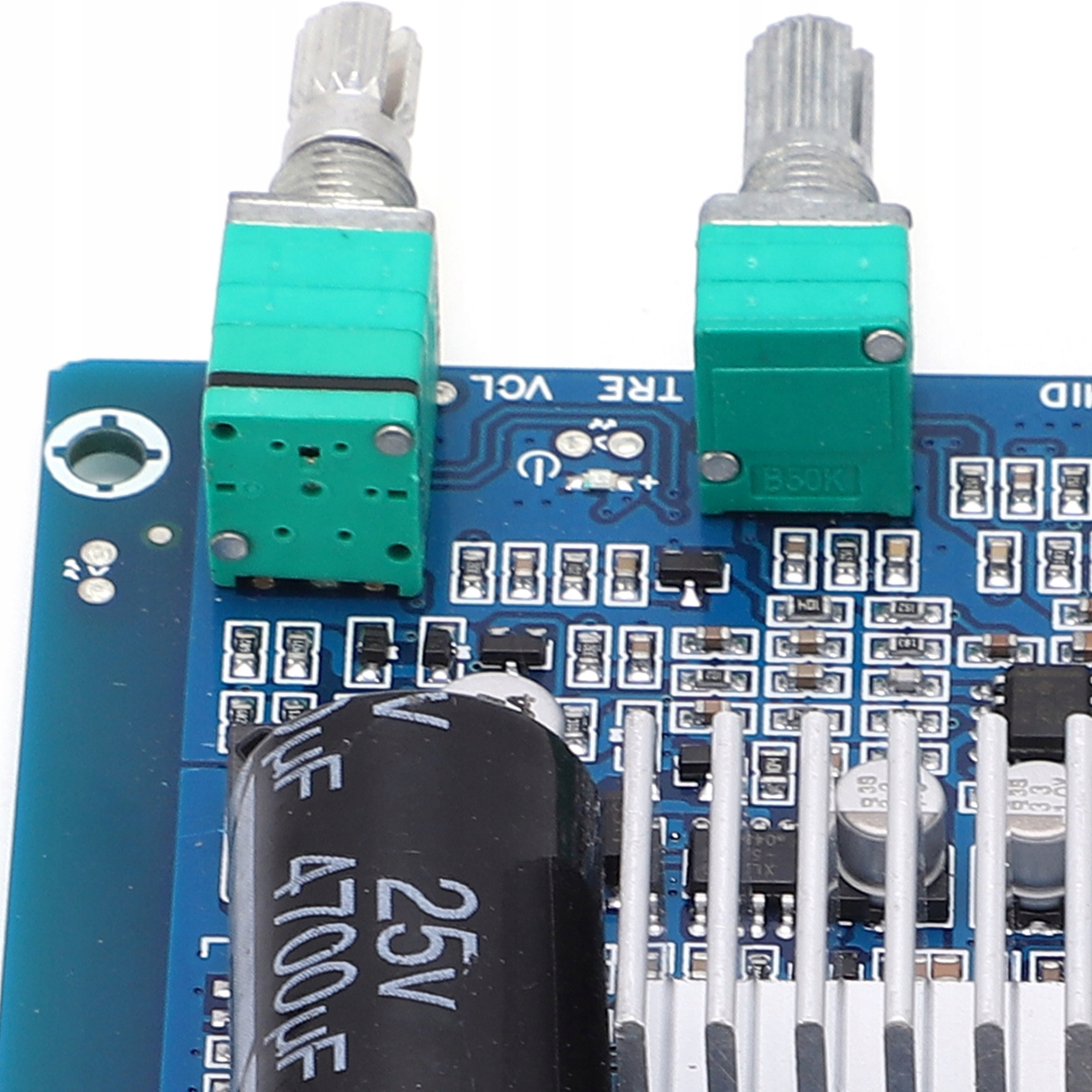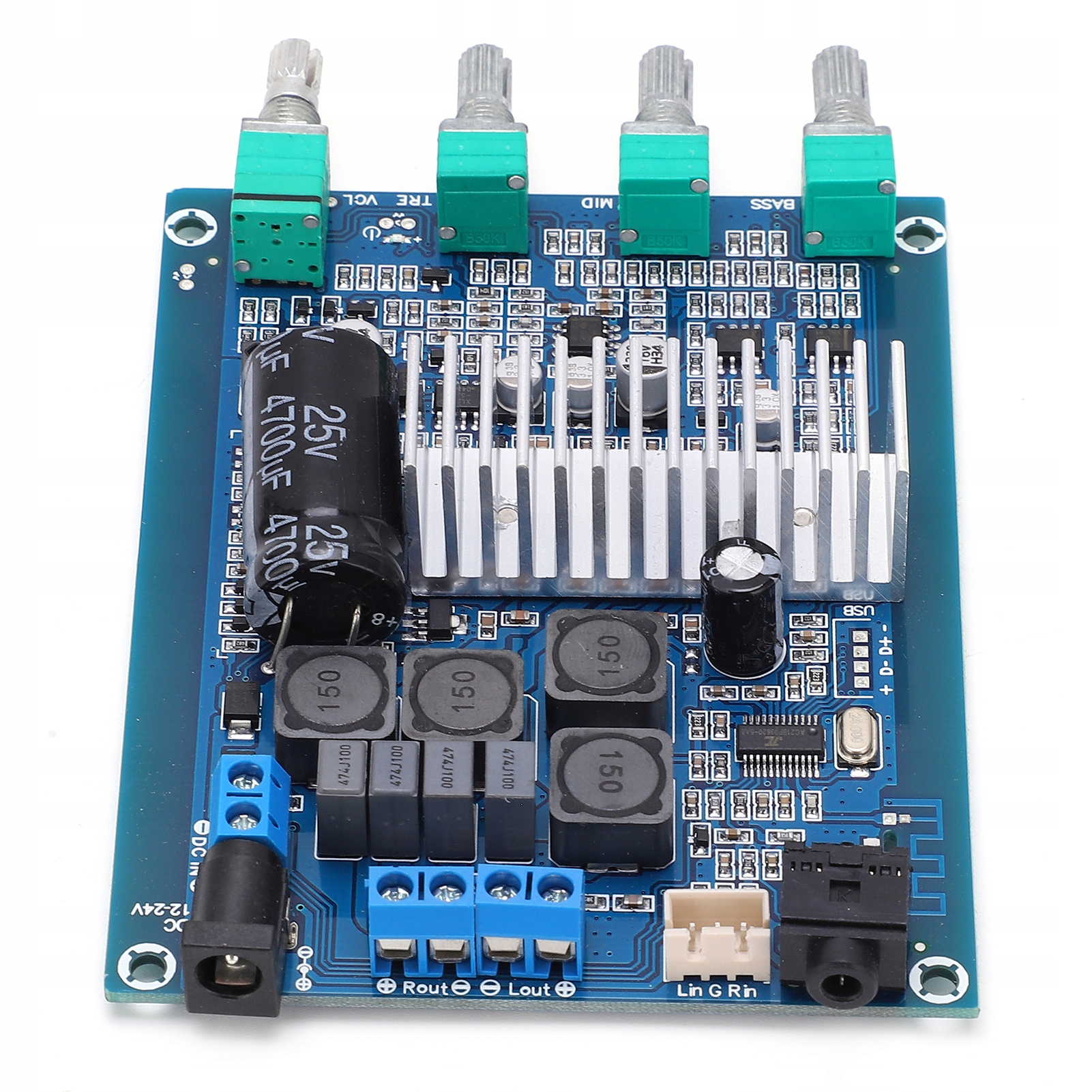 1. Wysoka wydajność, wykorzystuje pojedynczy zasilacz DC 12–24 V z wysokowydajnym układem cyfrowego wzmacniacza mocy TPA3116D2 firmy TI jako rdzeniem. Może obsługiwać dwukanałowe wyjście o mocy 50 W (lewy kanał) + 50 W (prawy kanał).