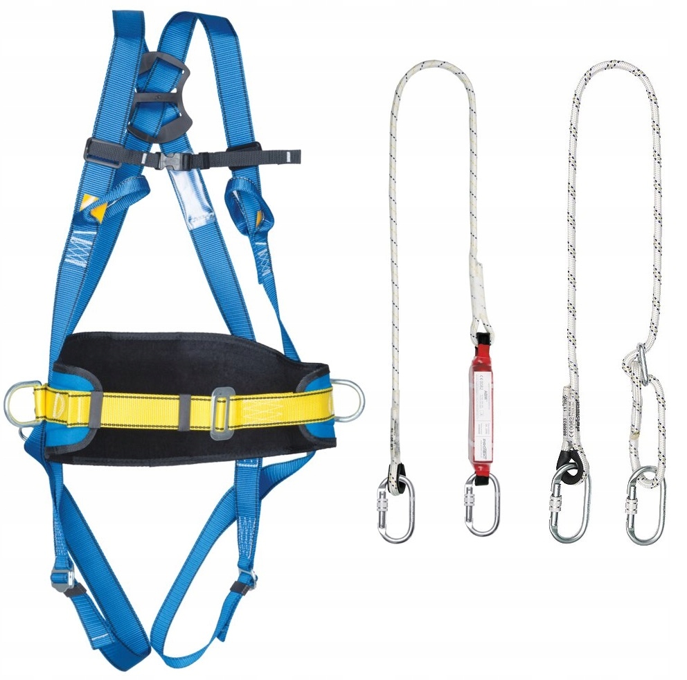 ✔ Szelki bezpieczeństwa P 05 z przednim i tylnym punktem zaczepowym oraz z pasem i bocznymi klamrami zaczepowymi.