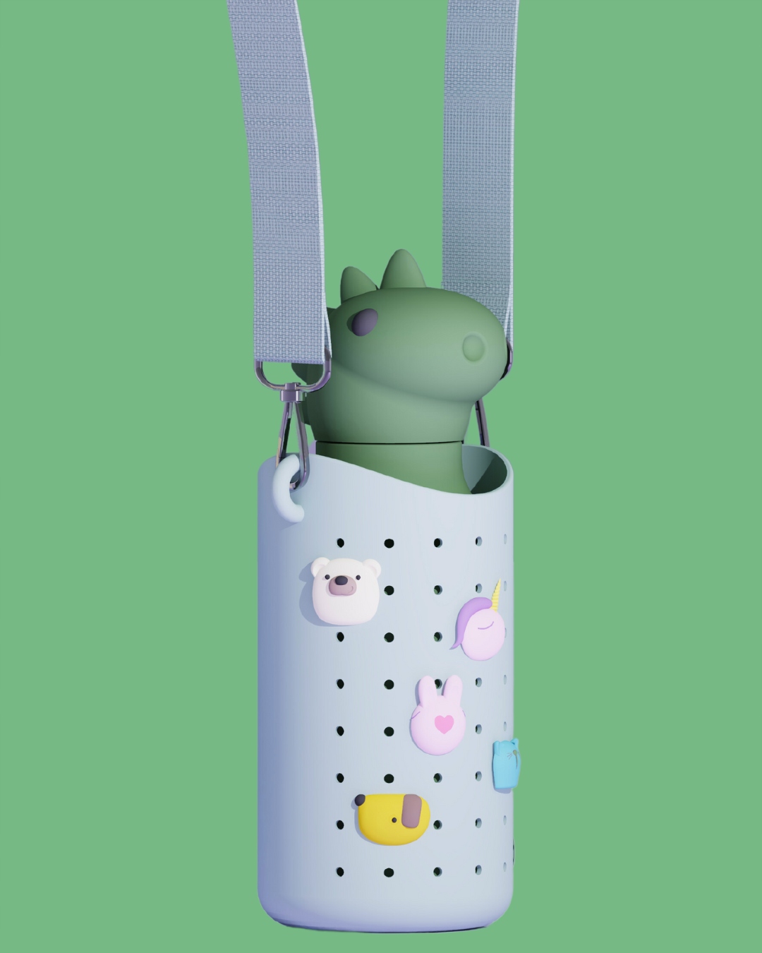 Elastyczne etui wykonano z trwałego, łatwego w czyszczeniu silikonu, a regulowany pasek z wytrzymałego nylonu pozwala wygodnie nosić je na ramieniu lub przez ramię. W zestawie znajduje się pięć wymiennych, kolekcjonerskich zawieszek, które dodają całości charakteru i pozwalają dopasować wygląd do własnego stylu.