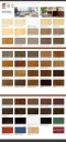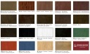 Każdy kolor ma swój kod i nazwę (np. Rovere rustico scuro, Miele, Nero, Teak scuro itd.).