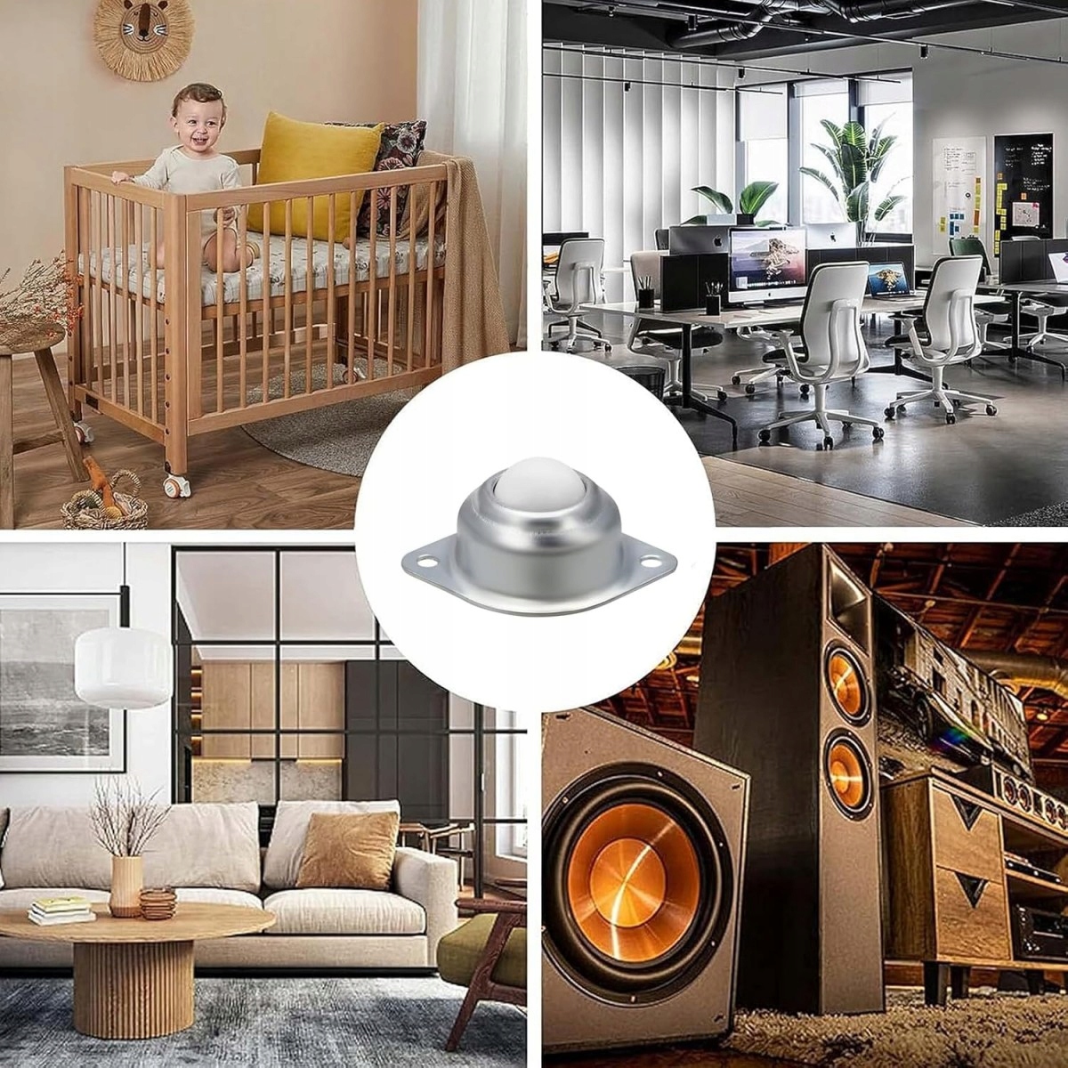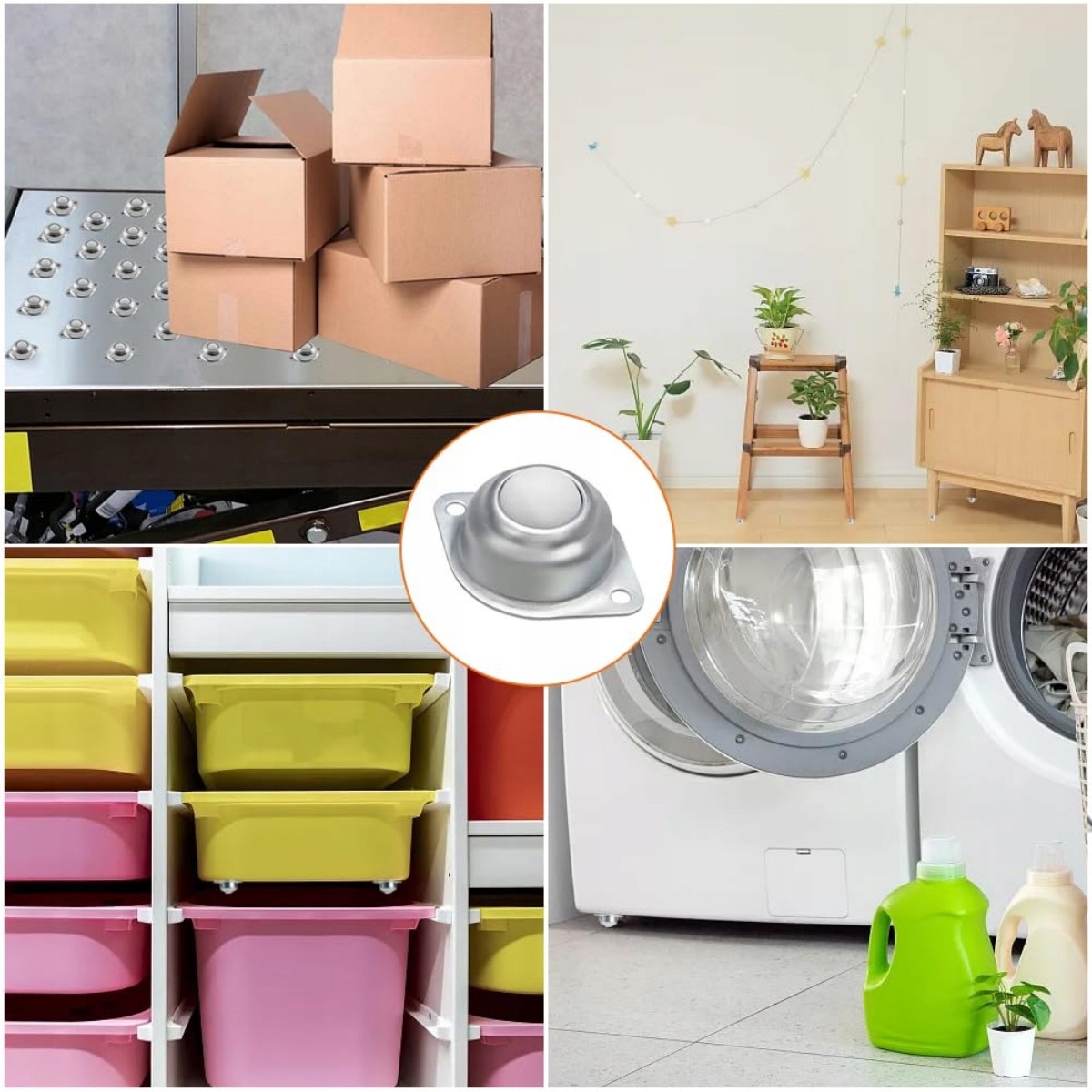 Powierzchnia nośna rolek kulkowych do mebli wykonana jest z ocynkowanego żelaza, które jest odporne na zarysowania, korozję, rdzę, stabilność, uszkodzenia i trwałość.