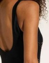 Stworzony z wysokiej jakości poliamidu, strój gwarantuje długotrwałą trwałość oraz przyjemne, miękkie doznania przy kontakcie ze skórami. Materiał charakteryzuje się odpornością na chlor oraz promieniowanie UV, dzięki czemu po długim dniu spędzonym na wodzie nadal zachowa swój kształt i koloryt. Brak wyraźnego wzoru oraz czarna barwa dodają klasy i uniwersalności, pozwalając połączyć go z dowolnym dodatkiem.